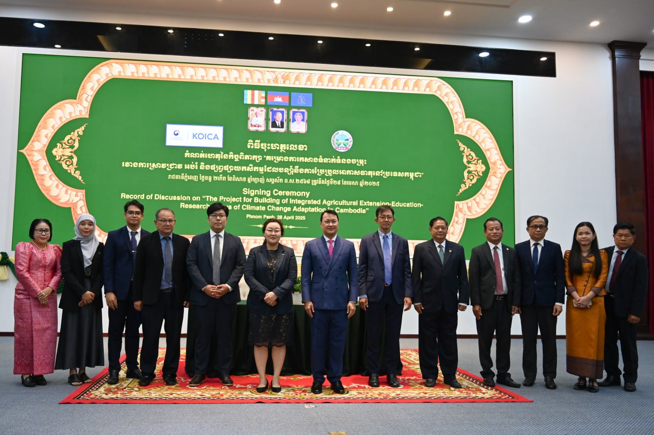 ភ្នំពេញ ៖ទីភ្នាក់ងារសហប្រតិបត្តិការអន្តរជាតិកូរ៉េ (KOICA) និងក្រសួងកសិកម្ម រុក្ខាប្រមាញ់ និងនេសាទ បានបង្ហាញការប្តេជ្ញាចិត្តរួមគ្នា ដើម្បីពង្រឹងវិស័យកសិកម្មក្នុងប្រទេសកម្ពុជាក្នុងការប្រឈមនឹងការប្រែប្រួលអាកាសធាតុតាមរយៈការចុះហត្ថលេខាលើកំណត់ហេតុនៃកិច្ចពិភាក្សាសម្រាប់គម្រោងកសាង ”ទំនាក់ទំនងចម្រុះរវាងការស្រាវជ្រាវ អប់រំ និងផ្សព្វផ្សាយកសិកម្មដែលបន្សាំទៅនឹងបម្រែបម្រួលអាកាសធាតុនៅប្រទេសកម្ពុជា”។