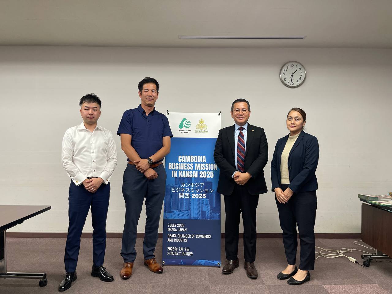 គួរជម្រាបផងដែរថា ដោយមានកិច្ចសហប្រតិបត្តិការយ៉ាងជិតស្និទ្ធជាមួយមជ្ឈមណ្ឌលអាស៊ាន-ជប៉ុន នាថ្ងៃទី៧ ខែកក្កដា ឆ្នាំ២០២៥ ឯកឧត្តម សួន សុផល អគ្គលេខាធិការរងគណៈកម្មាធិការវិនិយោគកម្ពុជាក៏បានដឹកនាំសហការីទទួលជួបពិភាក្សាការងារជាមួយវិស័យឯកជនដែលមានមូលដ្ឋាននៅទីក្រុងអូសាកាក្នុងគោលបំណងសិក្សាស្វែងយល់អំពីមុខសញ្ញាវិនិយោគ ព្រមទាំងពិនិត្យលទ្ធភាពទាក់ទាញឱ្យមកបណ្តាក់ទុន និងពង្រីកការវិនិយោគបន្ថែមនៅកម្ពុជា។