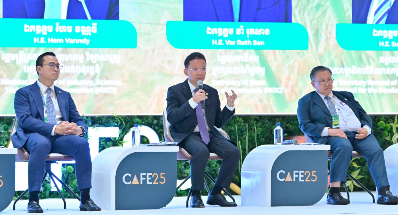 ភ្នំពេញ៖ រដ្ឋមន្ត្រីក្រសួងឧស្សាហកម្ម វិទ្យាសាស្ត្រ បច្ចេកវិទ្យា និងនវានុវត្តន៍ នាថ្ងៃទី​១៣ ខែវិច្ឆិកា បានអញ្ជើញចូលរួមជាវាគ្មិនក្នុងកិច្ចពិភាក្សាកម្រិតខ្ពស់នៃវេទិកា និងពិព័រណ៍កសិកម្មកម្ពុជា ២០២៥ ក្រោមប្រធានបទ “ការផ្គត់ផ្គង់ទីផ្សារដើម្បីឆ្លើយតបនឹងកំណើនតម្រូវការក្នុងស្រុក និងសម្រាប់ការនាំចេញ៖ កាលានុវត្តភាពសម្រាប់វិស័យកសិអាហារនៅកម្ពុជា ”។