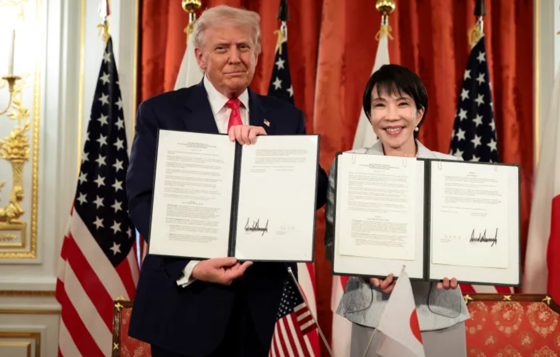 លោក Trump បានសាទរប្រទេសជប៉ុនថាជាសម្ព័ន្ធមិត្តនៅកម្រិតខ្លាំងបំផុត ដោយសរសើរលោកស្រី Takaichi ដែលទើបចូលកាន់តំណែងកាលពីសប្តាហ៍មុនថា ជានាយករដ្ឋមន្ត្រីដ៏អស្ចារ្យបំផុត។ ទន្ទឹមនឹងនេះ លោកស្រី Takaichi ក៏បានបង្ហាញពីការប្តេជ្ញាពង្រឹងទំនាក់ទំនងទ្វេភាគីជាមួយអាម៉េរិក ដោយកោតសរសើរថា ជាសម្ព័ន្ធភាពដ៏អស្ចារ្យបំផុតនៅក្នុងពិភពលោក។​