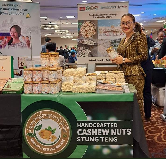 សូមរំលឹកថា ក្នុងពិព័រណ៍ពាណិជ្ជកម្មកន្លងទៅថ្មីៗនេះ នៅសហរដ្ឋអាមេរិក ក្រោមការសម្របសម្រួល និងរៀបចំដោយគម្រោងហាវែស III សហព័ន្ធស្វាយចន្ទីកម្ពុជា និងក្រុមហ៊ុននាំចេញគ្រាប់ស្វាយចន្ទីកម្ពុជាចំនួន៤ រួមមាន សិប្បកម្មកែច្នៃគ្រាប់ស្វាយចន្ទី ជ័យសំបូរ, សហគ្រាសកែច្នៃហ៊ែនក្រាហ្វធីតឃែស៊ូណាត់ស្ទឹងត្រែង, ក្រុមហ៊ុនអ៊ែមភល អាហ្គ្រោ ប្រដាក់ និង សិប្បកម្មកែច្នៃគ្រាប់ចន្ទីភូមិចន្ទី មានឱកាសបានជួប និងភ្ជាប់ទំនាក់ទំនងជាមួយអ្នកបញ្ជាទិញថ្មីៗនៅទីក្រុងឡងប៊ិច រដ្ឋកាលីហ្វ័រ ញ៉ា និងឈីកាហ្គូ និង រដ្ឋអ៊ីលីនយស៍។