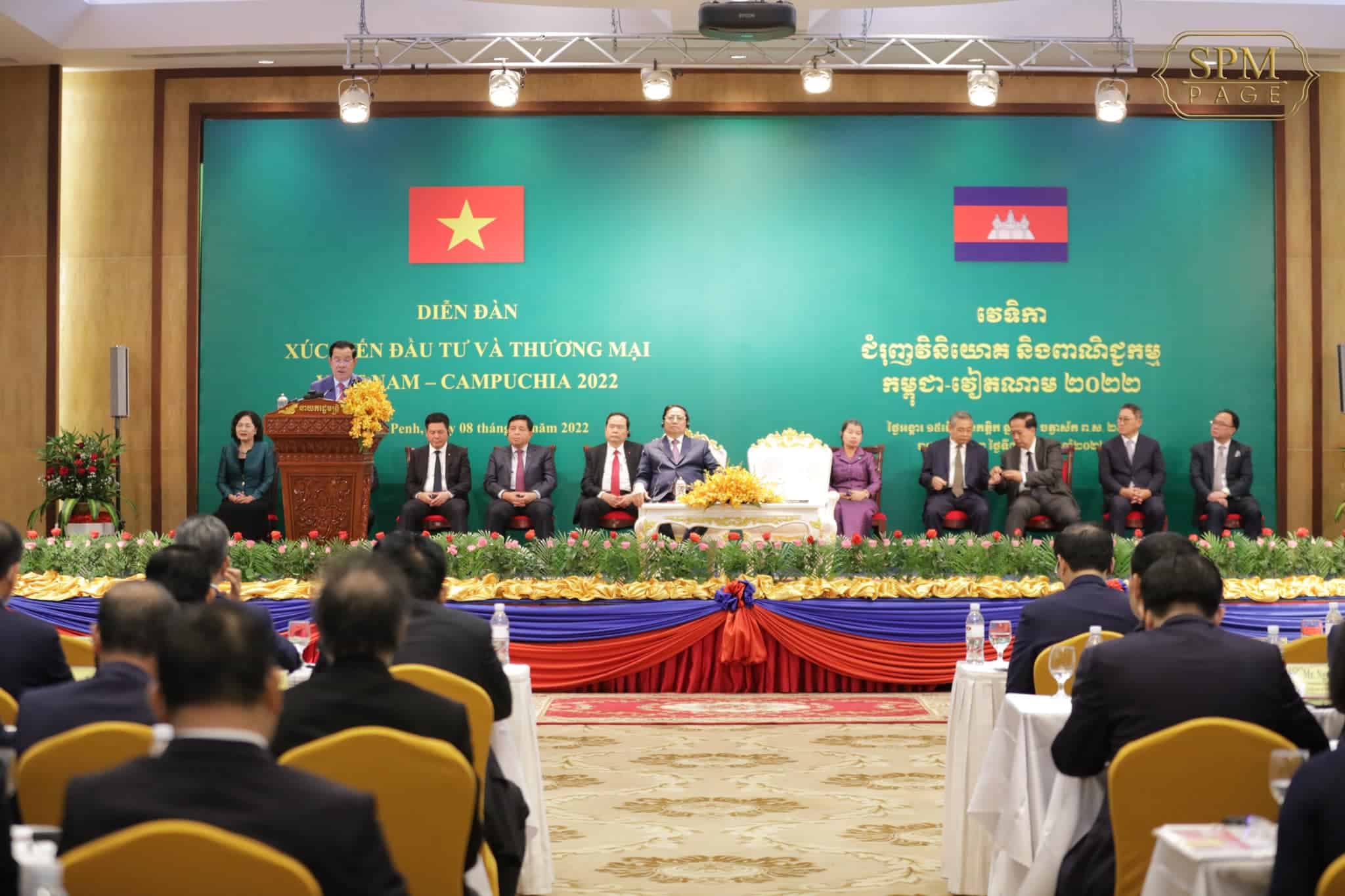 “ពុំដូចកាលពីមុនមានវិបត្តិជំងឺកូវីដ១៩ ដែលវិនិយោគិនវៀតណាមបានមកបណ្តាក់ទុនច្រើននៅកម្ពុជា ជាពិសេសក្នុងវិស័យកសិកម្ម និងវិស័យទូរគមនាគមន៍។ ក្នុងន័យនេះ ខ្ញុំសូមលើកទឹកចិត្តឱ្យវិនិយោគិនវៀតណាមមកបណ្តាក់ទុន និងធ្វើប្រតិបត្តិការអាជីវកម្មឱ្យកាន់តែច្រើនឡើងវិញនៅកម្ពុជា ជាពិសេសក្នុងវិស័យដែលកំពុងមានសក្តានុពលខ្ពស់នៅកម្ពុជា ដូចជាកសិកម្មទំនើប ឧស្សាហកម្មកែច្នៃចំណីអាហារ និងឧស្សាហកម្មកម្មន្តសាលធុនស្រាល ជាដើម”