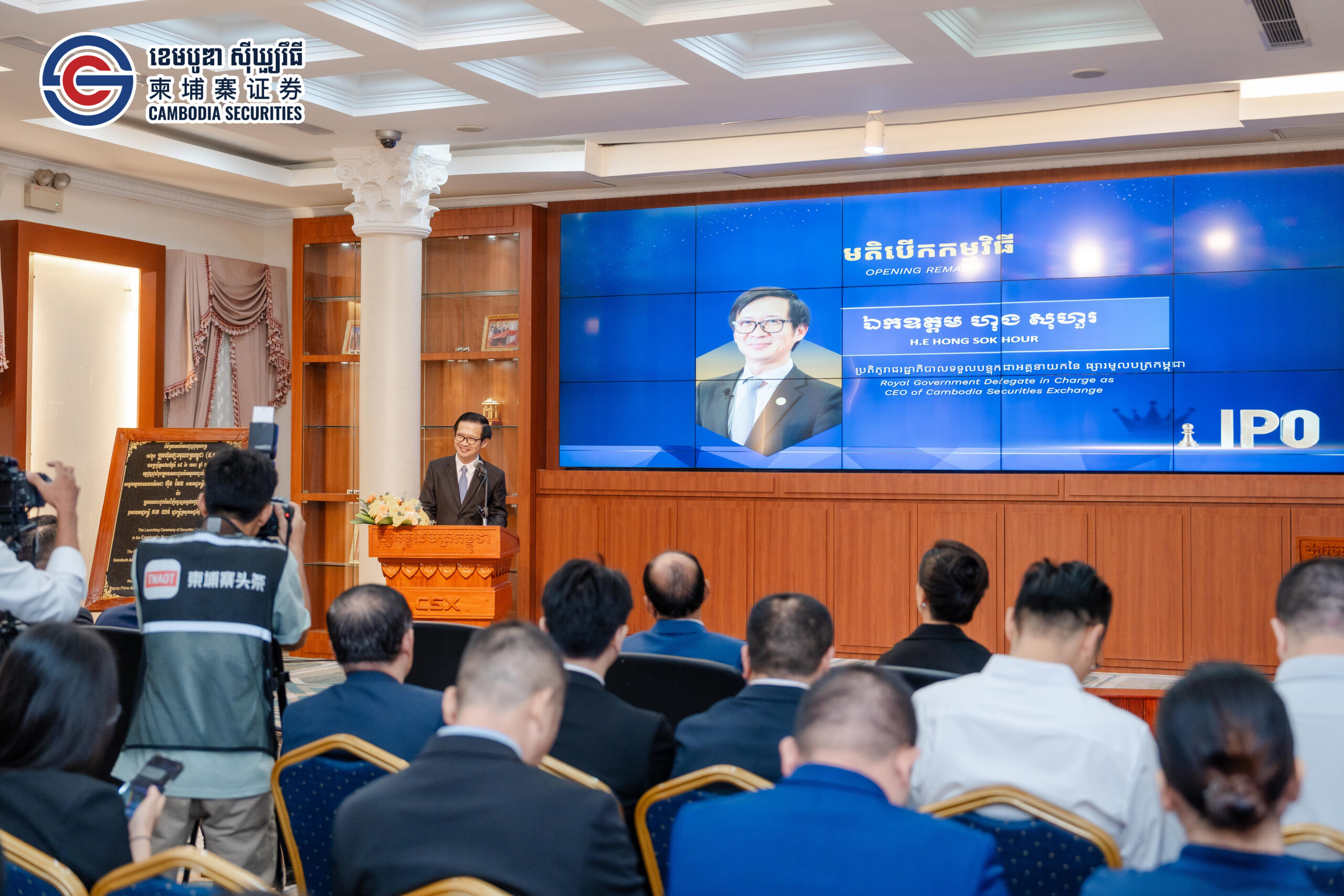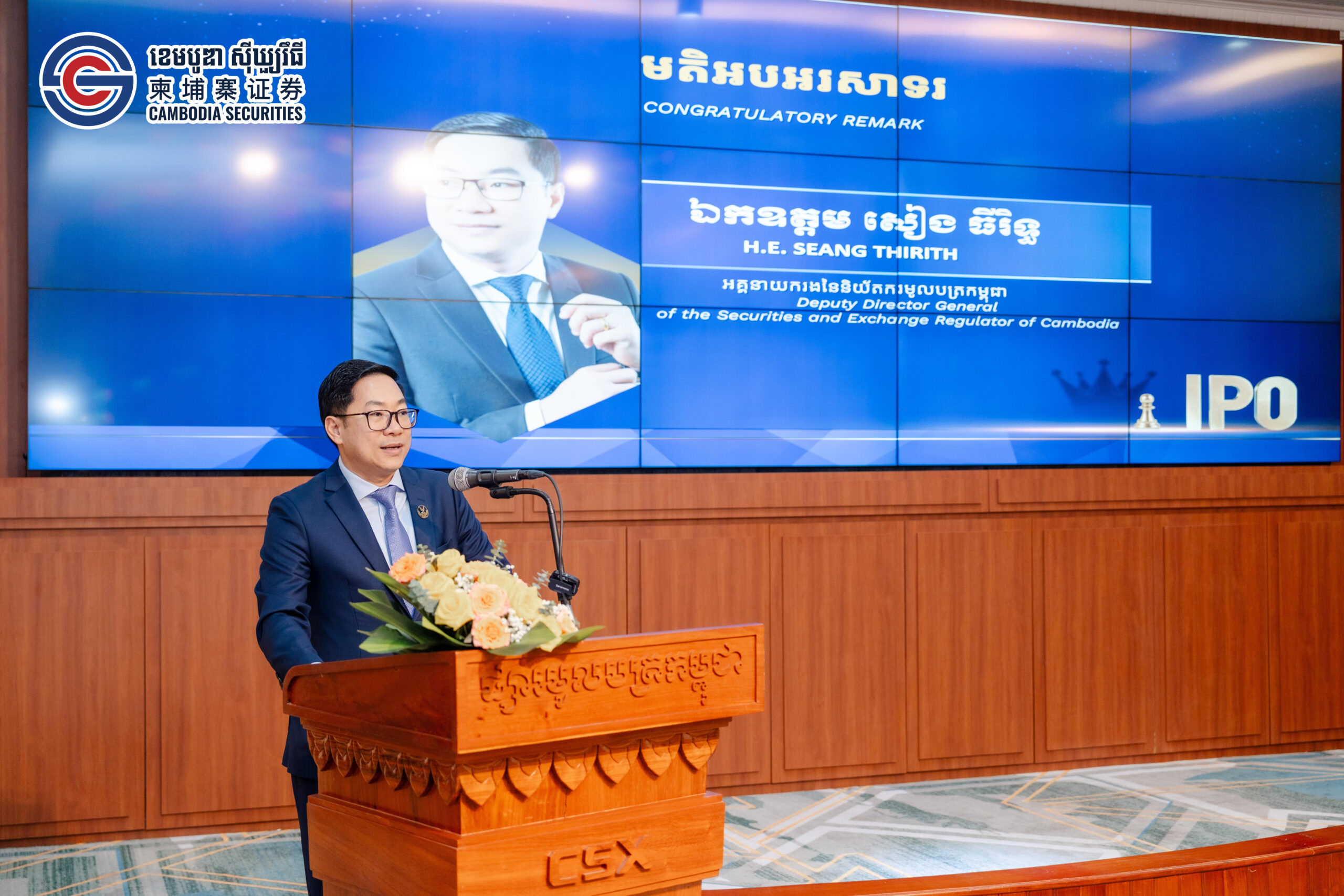 ឯកឧត្តម ហុង សុហួរ ប្រតិភូរាជរដ្ឋាភិបាល ទទួលបន្ទុកជាអគ្គនាយកនៃផ្សារមូលបត្រកម្ពុជា បានថ្លែងឱ្យដឹងដូច្នេះនៅក្នុង កម្មពិធី រ៉ូដសូ ស្តីពីការបោះផ្សាយលក់មូលបត្រកម្មសិទ្ធិជាសាធារណៈលើកដំបូងរបស់ ក្រុមហ៊ុន ពីកាសូ ស៊ីធី ហ្គាដិន ឌីវេឡុបមិន ម.ក” នៅផ្សារមូលបត្រកម្ពុជា (ផមក)នាព្រឹកថ្ងៃទី១៤ ខែតុលា ឆ្នាំ២០២៥ ។