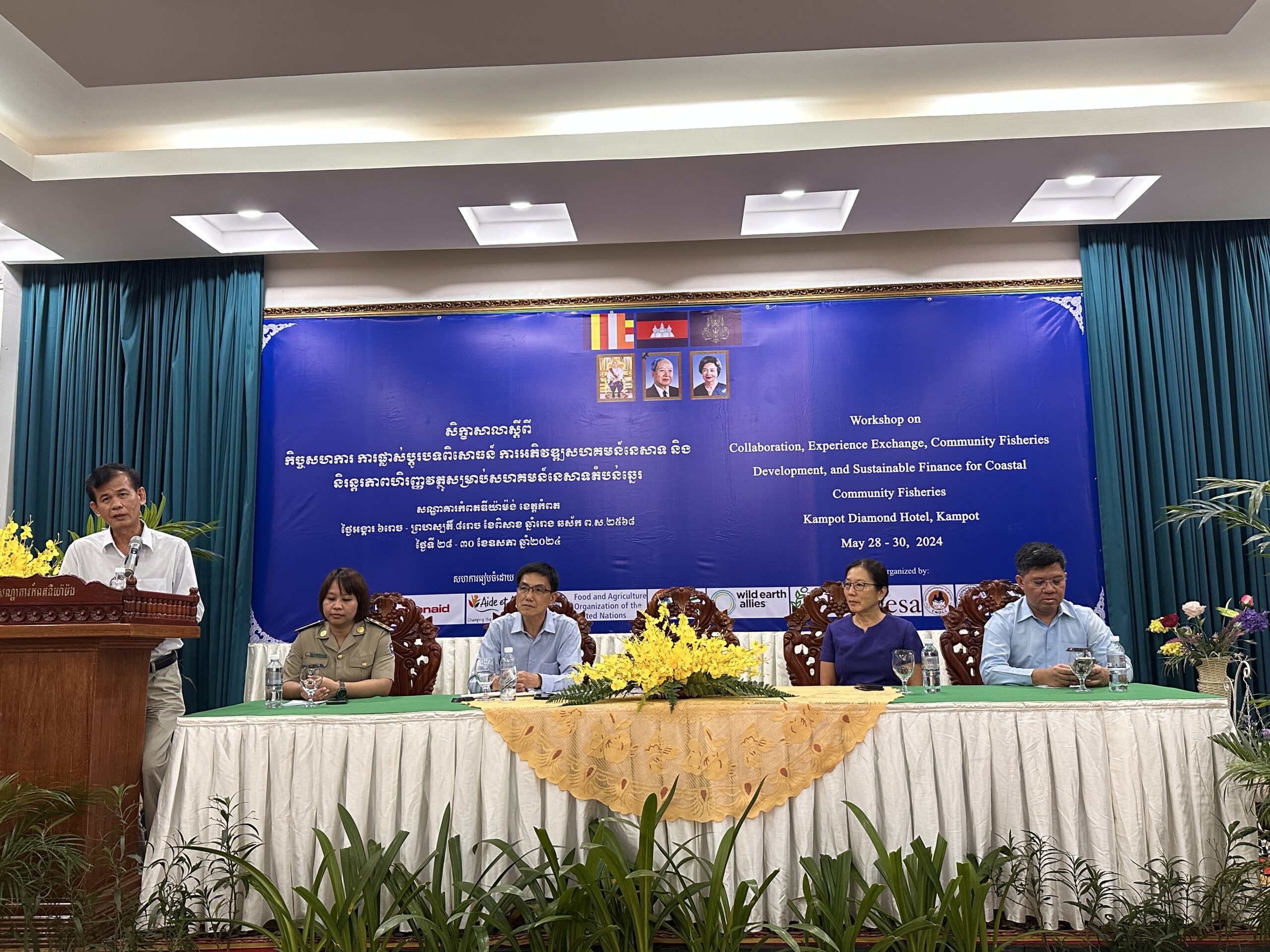 ការជួបជុំគ្នាពិភាក្សានៅខេត្តតំបន់សមុទ្រ ក្នុងខេត្តកំពត នៅថ្ងៃទី៣ ខែមិថុនា ឆ្នាំ២០២៤ នេះ សហការរៀបចំដោយ CFDD, គម្រោង CamAdapt, អង្គការ Aid et Action, អង្គការ Wild Earth Allies, អង្គការ Landesa និងអង្គការ Action Aid ជាមួយមជ្ឈមណ្ឌល អភិវឌ្ឍន៍ កុមារ និង ស្ត្រី នៅកម្ពុជា ម្លប់បៃតង មជ្ឈមណ្ឌលព្រហ្មវិហារធម៌ និងអង្គការស្រលាញ់ធនធានធម្មជាតិកម្ពុជា ដោយមានការគាំទ្រផ្នែកបច្ចេកទេសពីអង្គការ FAO។ ដោយឡែកការជួបជុំបន្ទាប់ទៀត នឹងរៀបចំឡើងនៅខេត្តតំបន់ទន្លេសាប។