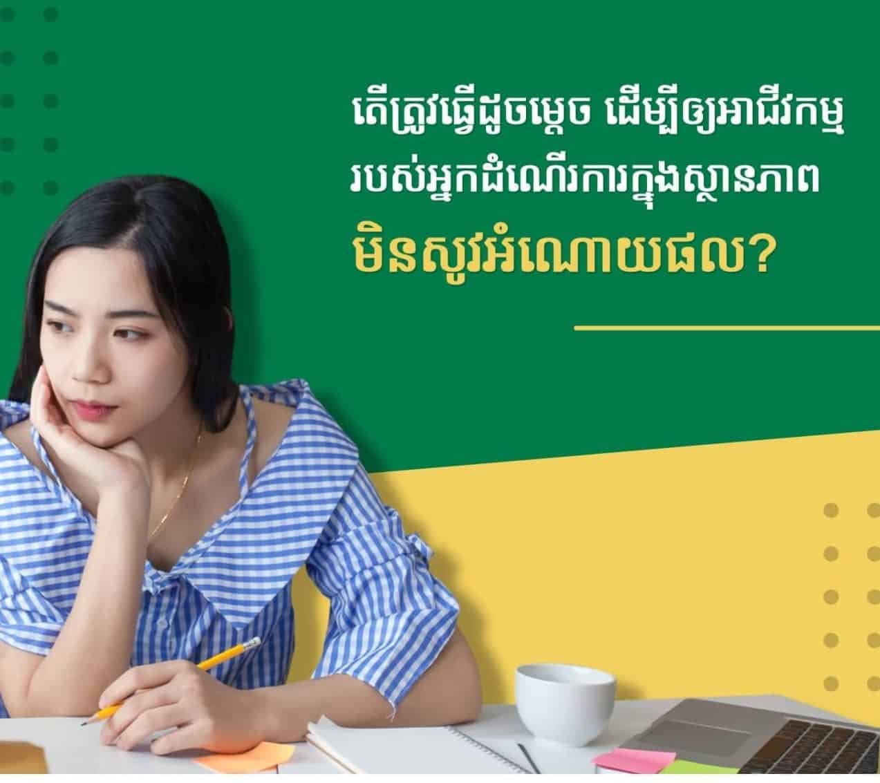 ៣. ស្វែងរកជំនួយ ៖ ប្រសិនបើអាជីវកម្មរបស់អ្នកស្ថិតក្នុងវិស័យអាទិភាព (ផ្នែកឧស្សាហកម្ម សេវាកម្ម និងពាណិជ្ជកម្ម សម្រាប់កាត់បន្ថយការនាំចូល និងបម្រើសេចក្ដីត្រូវការក្នុងស្រុក) ក្នុងស្ថានការណ៍នេះ អ្នកគួរត្រៀមខ្លួនសម្រាប់ការស្នើសុំនូវកញ្ចប់ថវិកាជំនួយពីរដ្ឋាភិបាល ដើម្បីជួយដោះស្រាយបញ្ហាអាជីវកម្ម។ មួយវិញទៀត អ្នកក៏អាចខ្ចីកម្ចីពីស្ថាប័នណាដែលមានគម្រោងជួយអាជីវកម្មធុនតូច និងមធ្យម ជាក់ស្ដែងដូចជា ធនាគារសហគ្រាសធុនតូច និងមធ្យម កម្ពុជា (SME Bank) ដែលបានទទួលនូវហិរញ្ញប្បទានពីរដ្ឋាភិបាលកម្ពុជា ដើម្បីជួយទ្រទ្រង់សហគ្រាស និងអាជីវកម្មជាដើម។ ៤. ពង្រីកមុខជំនួញតាមប្រព័ន្ធអនឡាញ ៖ ទោះបីជាអ្នកមានទីតាំង ឬហាងផ្ទាល់ខ្លួនហើយក៏ដោយ អ្នកគួរប្រើប្រាស់ Facebook, Instagram ឬ Tiktok ជាជំនួយបន្ថែមសម្រាប់ជួយផ្សព្វផ្សាយផលិតផល និងសេវាកម្មរបស់អ្នកអាចជាការបង្ហោះរូបភាពវីដេអូ និងការ Live ផ្ទាល់ជាដើម។ ធ្វើដូច្នេះ គឺដើម្បីប្រែវាជាឱកាសសម្រាប់ពង្រីកមុខជំនួញរបស់អ្នកឲ្យគេបានស្គាល់កាន់តែច្រើន។ សរុបមក មិនថានៅក្នុងកាលៈទេសៈណានោះទេ អ្នកគួរត្រៀមទុកនូវយុទ្ធសាស្រ្ដ ដើម្បីដំណើរការអាជីវកម្មរបស់អ្នក។ យើងសង្ឃឹមថាវិធីសាស្រ្ដទាំង ៤ ខាងលើនេះ អាចជួយជាគំនិត និងគន្លឹះខ្លះ ដើម្បីឲ្យអ្នកអាចអនុវត្តក្នុងអាជីវកម្មរបស់អ្នកបាន៕