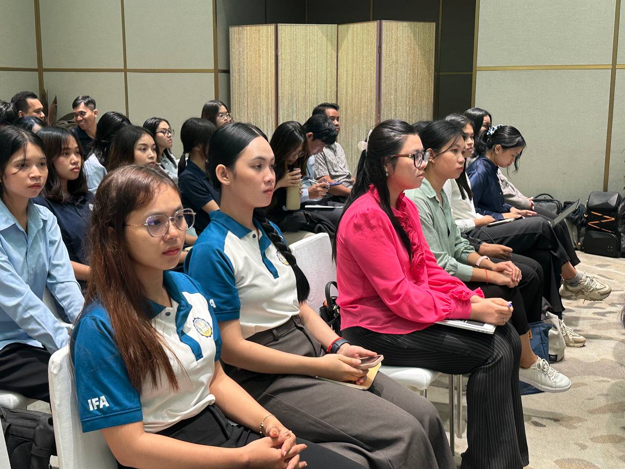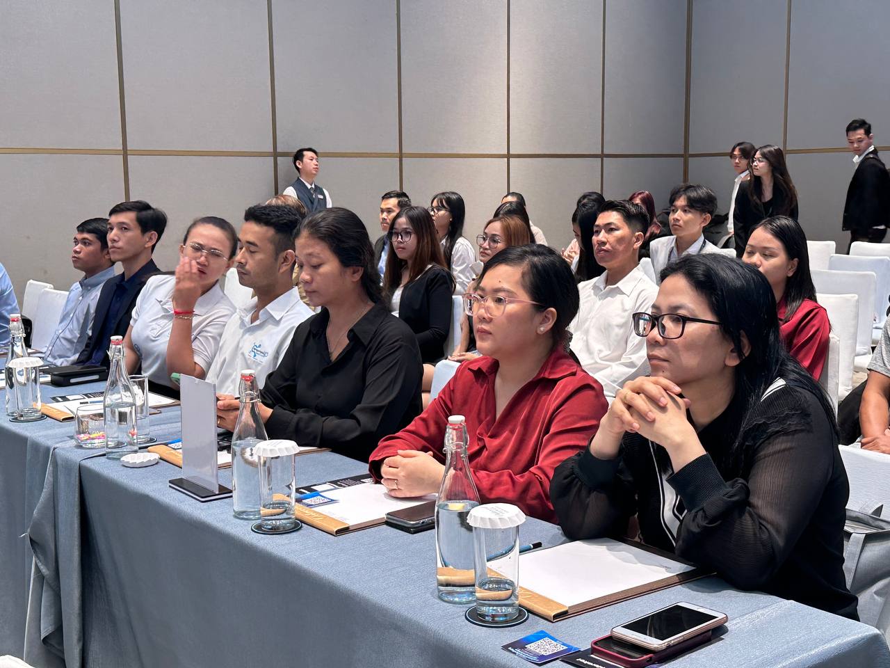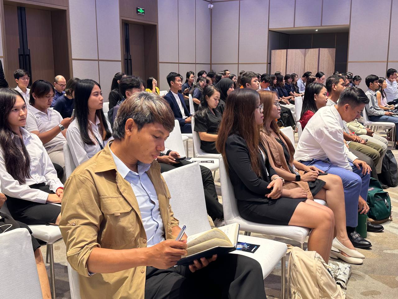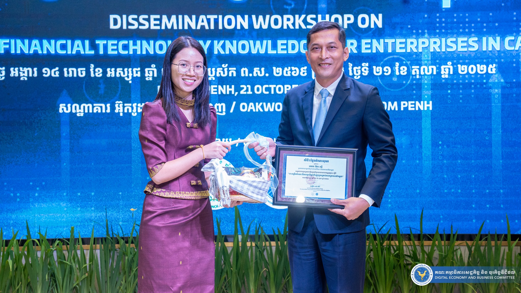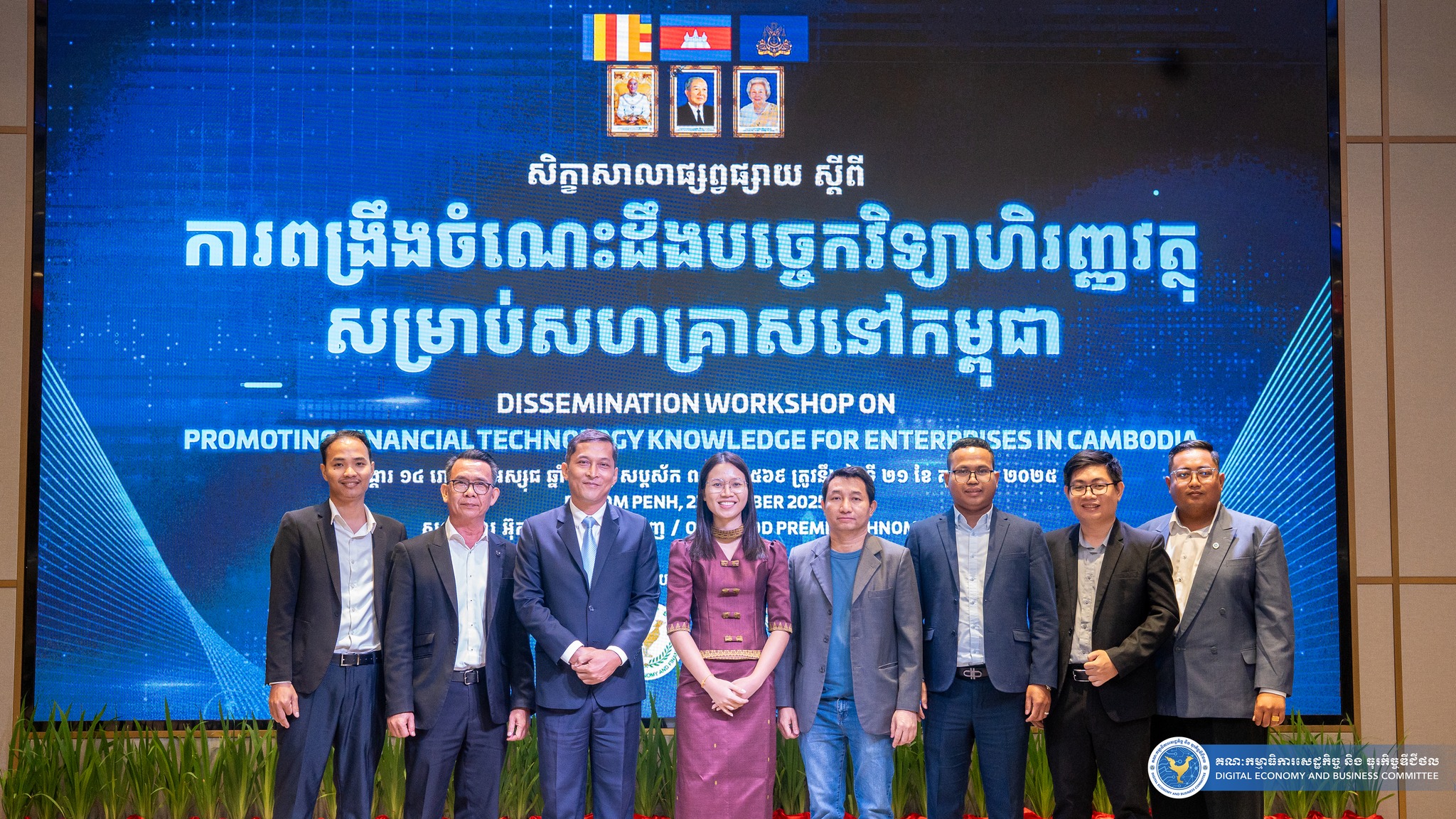 សូមជម្រាបថា៖ សិក្ខាសាលាផ្សព្វផ្សាយស្តីពី «ការពង្រឹងចំណេះដឹងបច្ចេកវិទ្យាហិរញ្ញវត្ថុសម្រាប់សហគ្រាសនៅកម្ពុជា» មានគោលបំណងពង្រឹងចំណេះដឹងទាក់ទងទៅនឹងបច្ចេកវិទ្យាហិរញ្ញវត្ថុ, ចែករំលែកបទពិសោធ, និងផ្ដល់វេទិកាសម្រាប់បង្កើតទំនាក់ទំនងជាមួយគ្នាក្នុងប្រព័ន្ធអេកូឡូស៊ីនៃធុរកិច្ចក្នុងសេដ្ឋកិច្ចឌីជីថល។ សិក្ខាកាមដែលបានចូលរួមគឺជាថ្នាក់ដឹកនាំ និងតំណាងមកពីក្រសួង ស្ថាប័ន នៃរាជរដ្ឋាភិបាល, វិស័យឯកជន, សមាគម, គ្រឹះស្ថានអប់រំ និងក្រុមហ៊ុនដំណោះស្រាយឌីជីថល។
