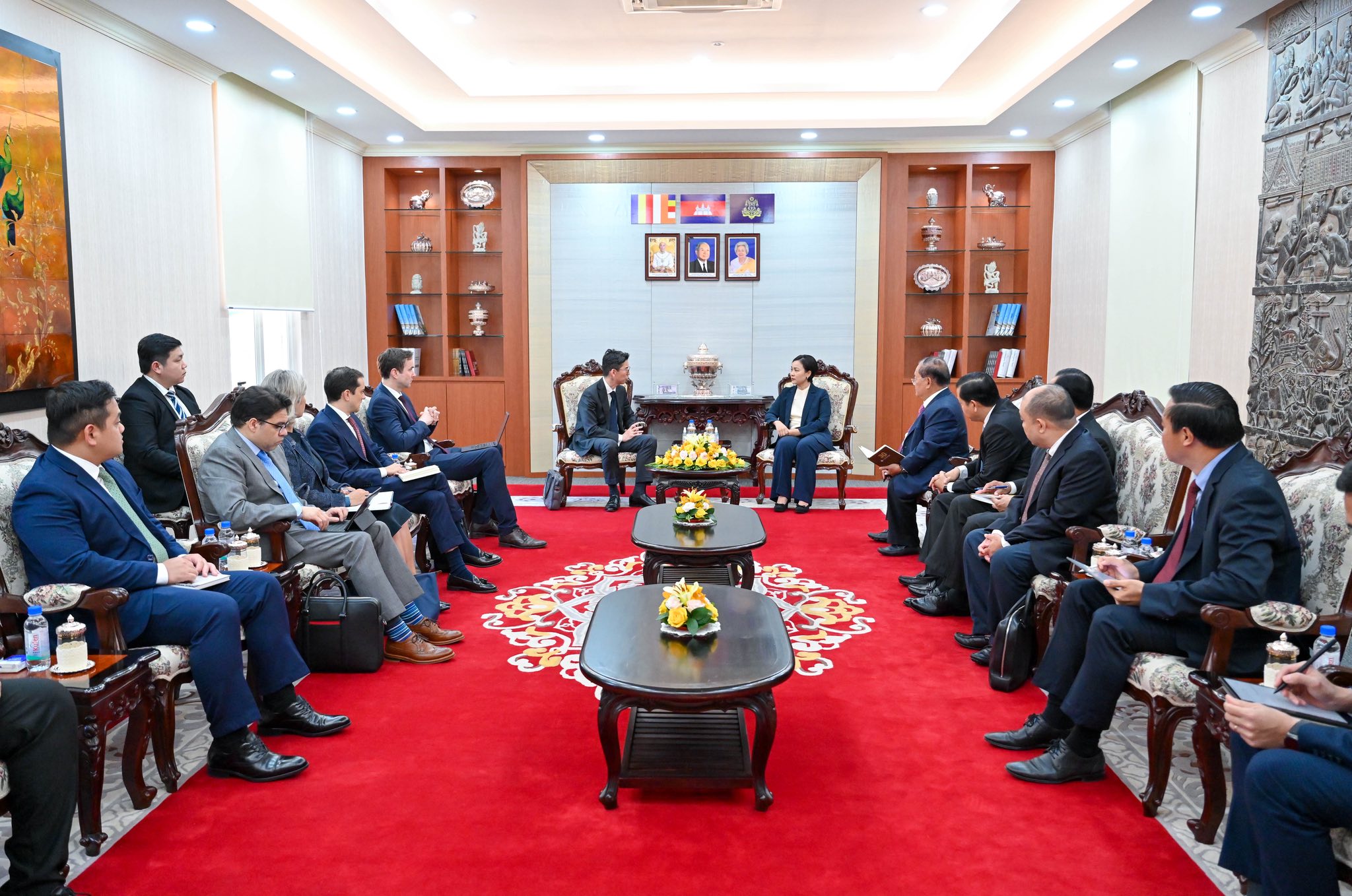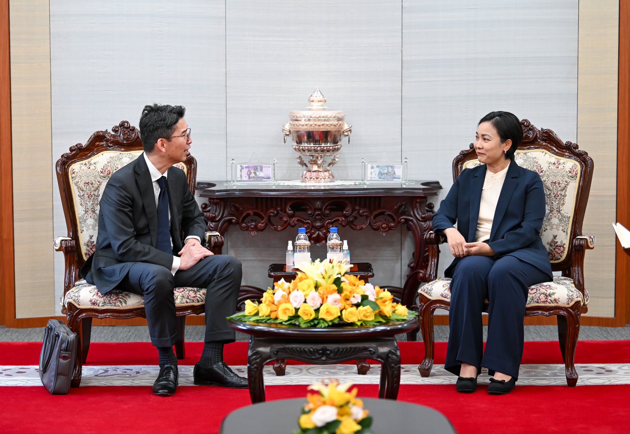 លោកជំទាវបណ្ឌិត បានជម្រាបជូនពីស្ថានភាពសេដ្ឋកិច្ចកម្ពុជាដោយរំលេចពីការសម្រេចបានកំណើនល្អក្នុងរយៈពេល៧ខែដំបូងឆ្នាំ២០២៥ និងបានគូសបញ្ជាក់ពីការរក្សាបានស្ថិរភាពអត្រាប្តូរប្រាក់ល្អប្រសើរ និងកម្រិតទាបនៃអត្រាអតិផរណា។ បន្ថែមលើនេះ លោកជំទាវក៏បានលើកឡើងពីការទទួលបានការកាត់បន្ថយអត្រាពន្ធគយបដិការមកត្រឹម ១៩% លើទំនិញនាំចេញទៅសហរដ្ឋអាម៉េរិក ដែលនឹងបន្តរួមចំណែករក្សាភាពប្រកួតប្រជែងរបស់កម្ពុជាក្នុងការទាក់ទាញការវិនិយោគថ្មីៗបន្ថែមទៀត។