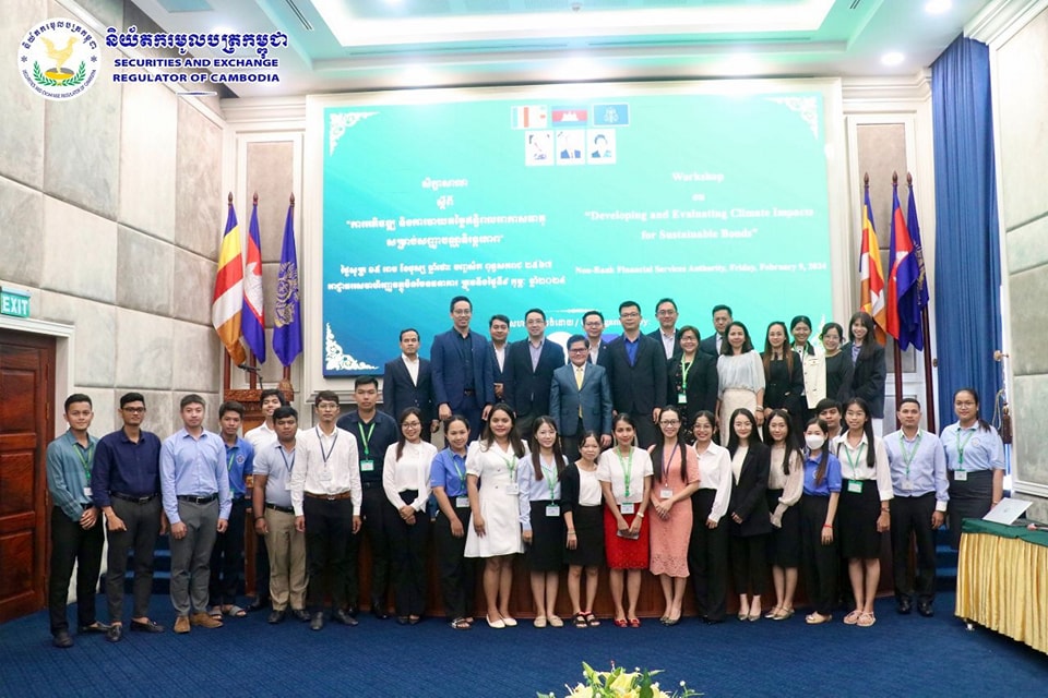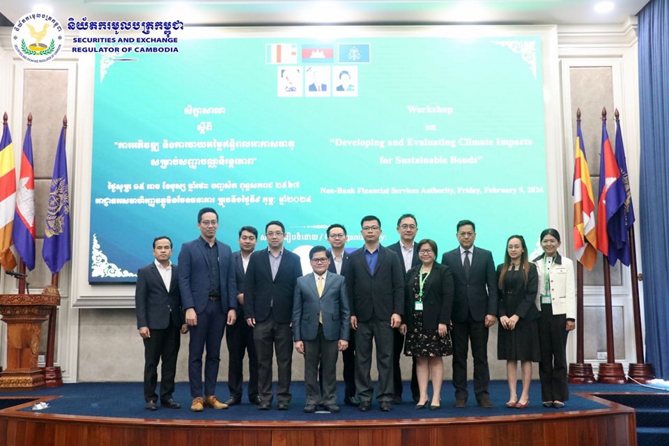 ភ្នំពេញ ៖ និយ័តករមូលបត្រកម្ពុជា (ន.ម.ក.) និងធនាគារអភិវឌ្ឍន៍អាស៊ី (ADB) បានសហការរៀបចំសិក្ខាសាលាស្តីពី “ការអភិវឌ្ឍ និងការវាយតម្លៃឥទ្ធិពលអាកាសធាតុសម្រាប់សញ្ញាបណ្ណនិរន្តរភាព” ដើម្បីបញ្ជ្រាបការយល់ដឹងសម្រាប់ភាគីពាក់ព័ន្ធ ជាពិសេសជំរុញកំណើន និងទំនុកចិត្តសម្រាប់ការវិវត្តឆាប់រហ័សនៃទីផ្សារសញ្ញាបណ្ណនិរន្តរភាពនៅកម្ពុជា។