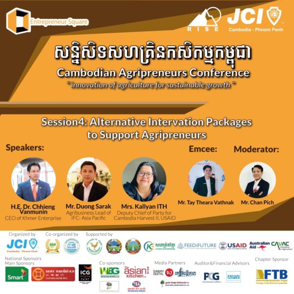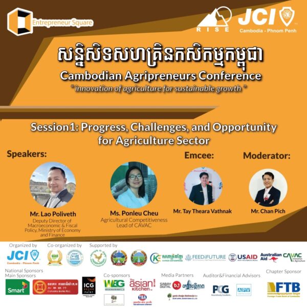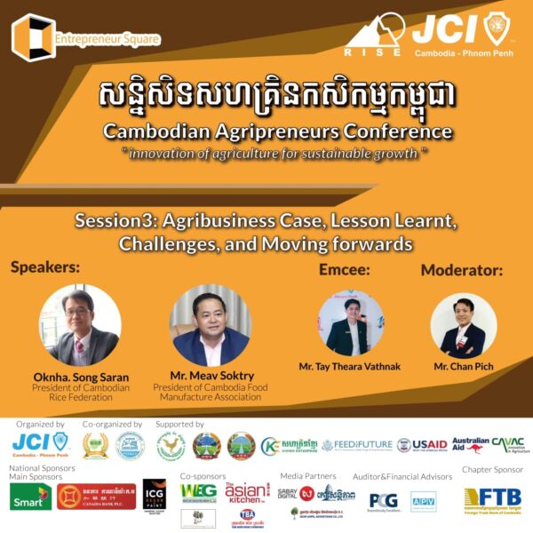 ភ្នំពេញ៖ ក្រុមការងារកម្មវិធី Entrepreneur Square នៃសភាយុវពាណិជ្ជករអន្តរជាតិកម្ពុជា សាខាភ្នំពេញ នៅឆ្នាំ២០២១នេះនឹងរៀបចំសន្និសីទសហគ្រិនកសិកម្មកម្ពុជា នៅថ្ងៃទី២៨ ខៃកក្កដា អមជាមួយនឹងវាគ្មិនល្បីៗ មានចំណេះដឹងខ្ពង់ខ្ពស់ ជំនាញ និងបទពិសោធន៍ច្បាស់លាស់នៅក្នុងវិស័យកសិកម្ម។