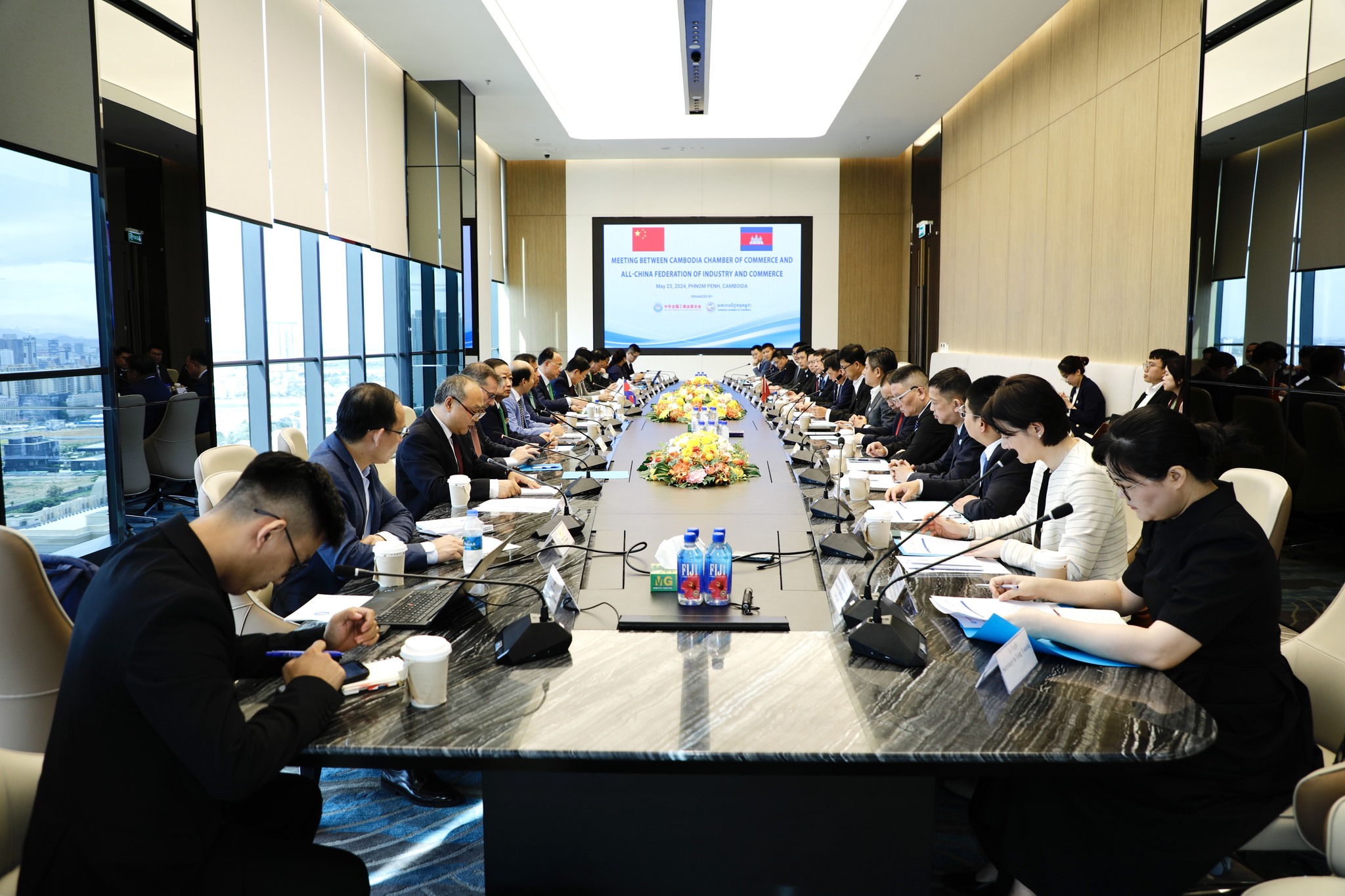 ភ្នំពេញ ៖ សភាពាណិជ្ជកម្មកម្ពុជា និងសហព័ន្ធឧស្សាហកម្ម និងពាណិជ្ជកម្មនៃសាធារណរដ្ឋប្រជាមានិតចិន បានជួបជជែកគ្នាដើម្បីស្វែងរកមធ្យោបាយជំរុញឱ្យមានការវិនិយោគនិងការបណ្តាក់ទុននៅក្នុងប្រទេសទាំងពីរឱ្យកាន់តែច្រើនបន្ថែមទៀត។