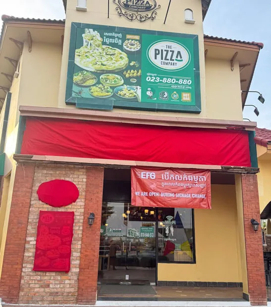 ក្រុមហ៊ុន អ៊ីអេហ្វជីកម្ពុជា បានសង្កេតឃើញថា អតិថិជននៅទូទាំងរាជធានីភ្នំពេញ បានចាប់អារម្មណ៍ និងកត់សម្គាល់ទៅលើម៉ាកសញ្ញារបស់ The Pizza Company គ្រប់ហាងទាំងអស់ ដែលបានបាំងដោយក្រណាត់ពណ៌ក្រហម។ ក្រុមហ៊ុនសូមញ្ជាក់ថា សកម្មភាពទាំងនោះមិនមានអ្វីត្រូវលាក់បាំងនោះទេ។ យើងកំពុងស្ថិតក្នុងដំណើរការផ្លាស់ប្តូរ។ គម្រោងនេះត្រូវបានរៀបចំឡើងក្រោមការយកចិត្តទុកដាក់បំផុត ហើយអ្វីដែលនឹងចូលមកដល់នាពេលខាងមុខនេះ គឺជាព័ត៌មាន ដែលលោកអ្នកកំពុងទន្ទឹងរង់ចាំផងដែរ។