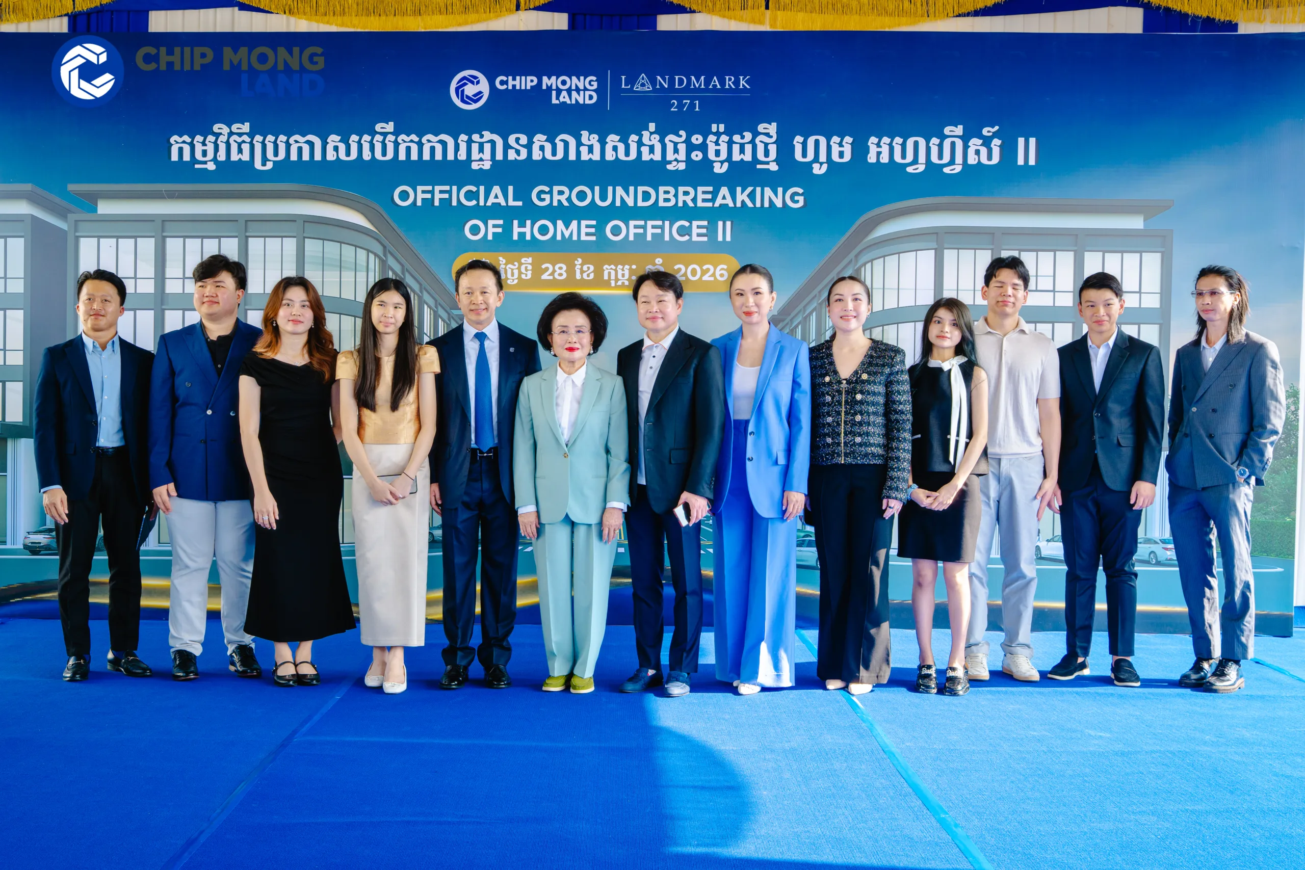 ភ្នំពេញ ៖ ក្រុមហ៊ុន ជីប ម៉ុង លែន បានបោះជំហានទៅមុខយ៉ាងមុតមាំមួយកម្រិតទៀត តាមរយៈការរៀបចំពិធីបុកគ្រឹះបើកការដ្ឋានសាងសង់ និងបើកលក់ Pre-Sales ជាផ្លូវការនូវ “Home Office II” ដែលជាប្រភេទផ្ទះអាជីវកម្មម៉ូដថ្មីសន្លាង និងមានភាពច្នៃប្រឌិតខ្ពស់បំផុតនៅក្នុងតំបន់នាដើមឆ្នាំ២០២៦នេះ។