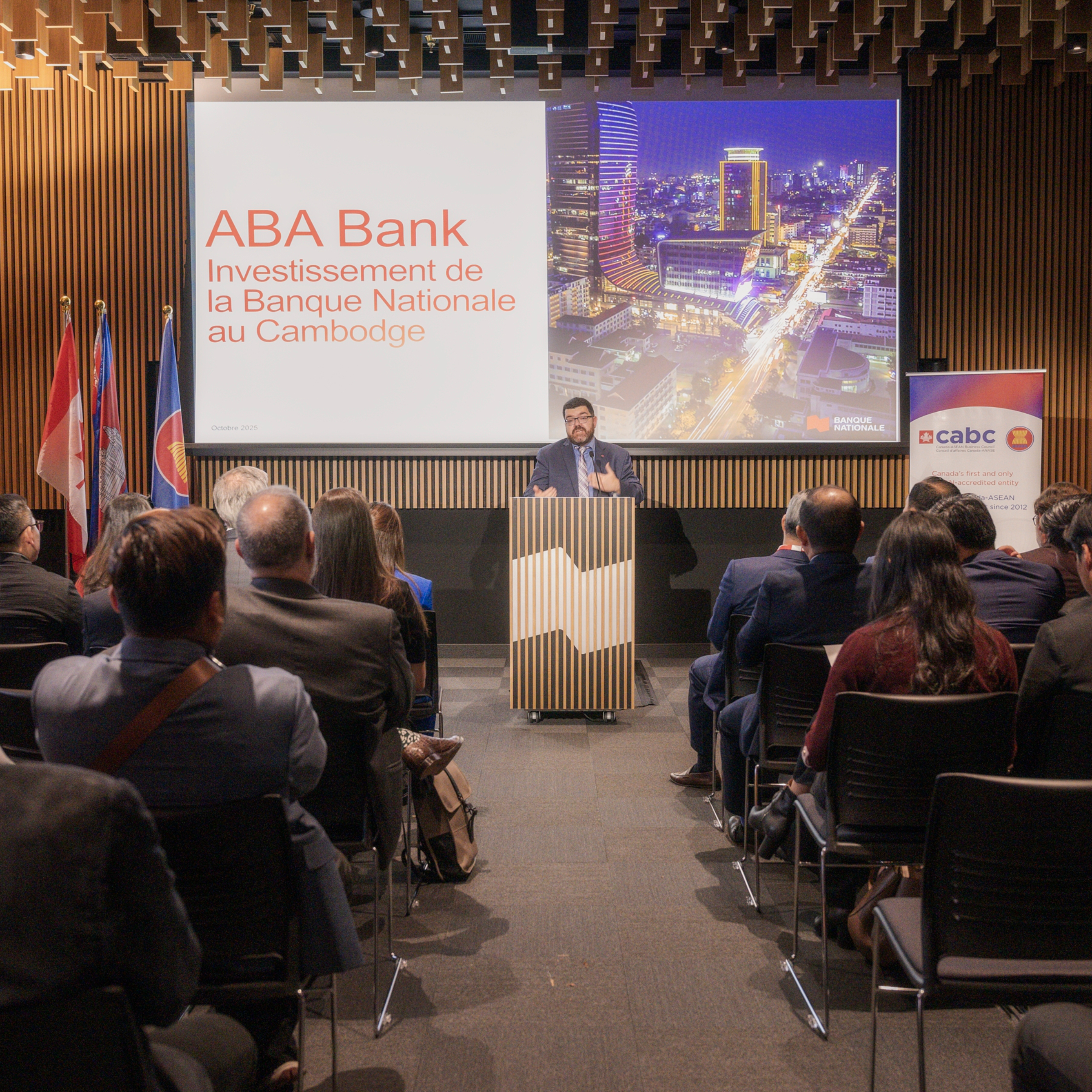 ភ្នំពេញ ៖ កាលពីថ្ងៃទី ៣០ ខែតុលា ឆ្នាំ២០២៥ ធនាគារជាតិកាណាដា ដែលជាធនាគារមួយក្នុងចំណោមគ្រឹះស្ថានហិរញ្ញវត្ថុធំបំផុតក្នុងប្រទេសកាណាដា និងជាភាគហ៊ុនិករបស់ធនាគារ ABA បានរៀបចំ សិក្ខាសាលាធុរកិច្ចកាណាដា-កម្ពុជា នៅទីស្នាក់ការកណ្តាលរបស់ធនាគារ ក្នុងទីក្រុងម៉ុងរ៉េអាល់។ កម្មវិធីនេះ ទទួលបានការចូលរួមពីសំណាក់មន្រ្តីរដ្ឋាភិបាលប្រទេសកម្ពុជា អ្នកតំណាងពីវិស័យឯកជន ព្រមទាំងអ្នកវិនិយោគកាណាដាជាច្រើន ក្នុងគោលបំណងពិភាក្សាស្វែងរកមធ្យោបាយ ក៏ដូចជាឱកាសថ្មីៗសម្រាប់ពាណិជ្ជកម្ម និងវិនិយោគទ្វេភាគីរវាងប្រទេសទាំងពីរ។