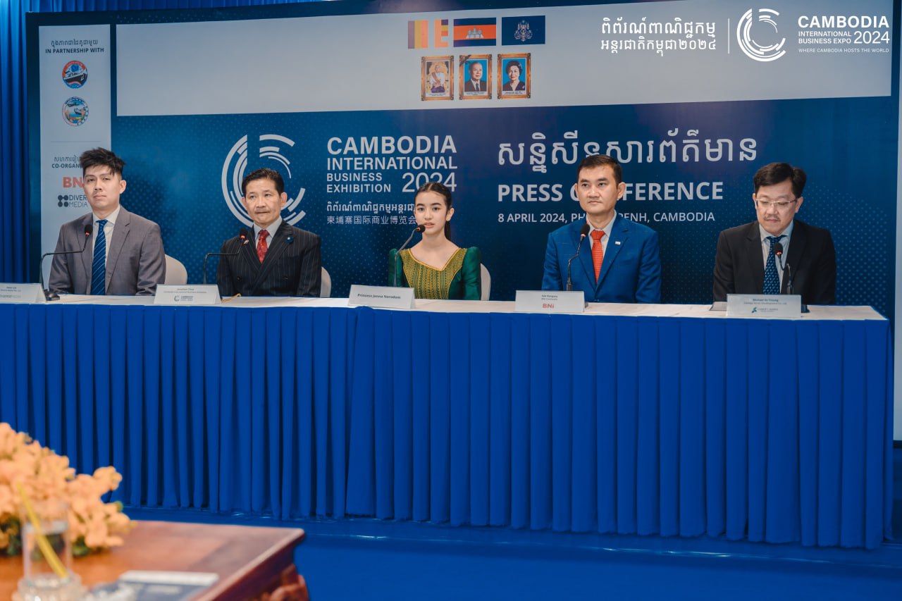 នារសៀលថ្ងៃ ថ្ងៃទី៨ ខែមេសា ឆ្នាំំ២០២៤ កន្លងទៅនេះ នៅអាគារ Diamond Tower ក្រោមវត្តមាន និងការផ្តល់ជាកិត្តិយសដ៏ខ្ពង់ខ្ពស់របស់ ព្រះនាង នរោត្ដម ជេនណា ក្នុងការអញ្ជើញចូលរួមជាគណៈអធិបតី ហើយក្នុងនោះក៏មានលោក JONATHON CHUA ដែលជាអគ្គនាយកពិព័រណ៍ពាណិជ្ជកម្មអន្តរជាតិកម្ពុជា២០២៤ លោក EWAN LIM នាយកគ្រប់គ្រងក្រុមហ៊ុន DIVERSE MEDIA (CAMBODIA) CO., LTD. និងលោក សុខ រង្សី ប្រធាននាយកប្រតិបត្តិ BNI CAMBODIA ដែលជាដៃគូសហការរៀបចំកម្មវិធី លោក MICHAEL VO TROUNG នាយកអភិវឌ្ឍន៍អាជីវកម្មរបស់ក្រុមហ៊ុន CANOPY SANDS DEVELOPMENT CO. LTD. ដែលជាអ្នកឧបត្ថម្ភធំបំផុត ក្រុមហ៊ុន KCRI INTERNATIONAL COOPERATION CO., LTD. ក្រុមហ៊ុន CHLL GLOBAL LOGISTIC CO., LTD និងក្រុមហ៊ុន E&M YAMMY ជាដៃគូសហការឧបត្ថម្ភប្រាក់ និងធនាគារ ACELEDA ជាដែគូសហការសំរិទ្ធ ព្រមជាមួយថ្នាក់ដឹកនាំរបស់ពិព័រណ៍ពាណិជ្ជកម្មអន្តរជាតិកម្ពុជា២០២៤ ស្ថាបន័សារព័ត៌មាន និងភ្ញៀវកិត្តិយសយ៉ាងច្រើនកោះករបានអញ្ជើញចូលរួមផងដែរ។