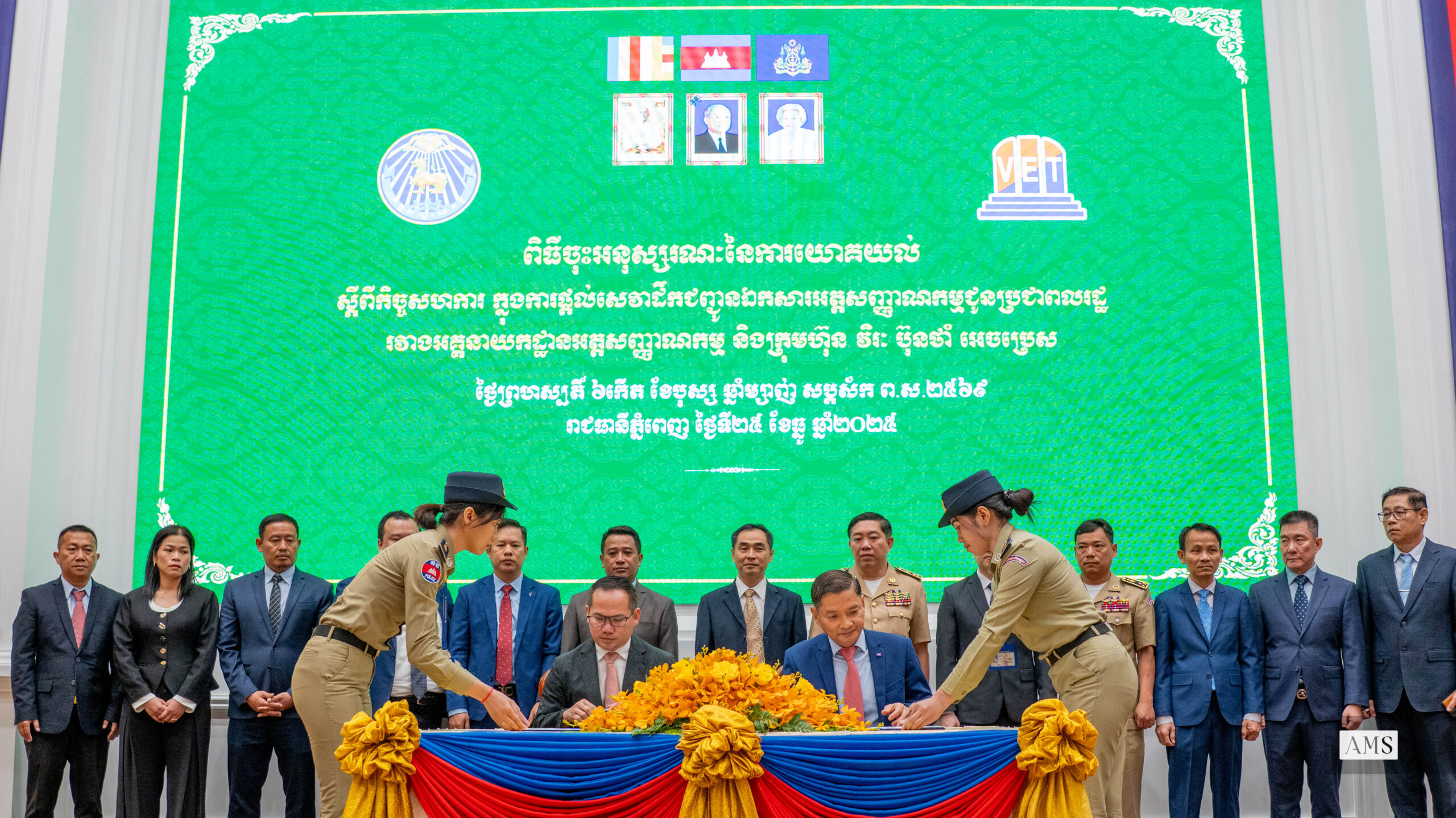 ឯកឧត្តមឧត្តមសេនីយ៍ឯក បណ្ឌិត តុប នេត អគ្គនាយកនៃអគ្គនាយកដ្ឋានអត្តសញ្ញាណកម្ម និងអ្នកឧក​ញ៉ា​ សួរ វីរៈ អគ្គនាយកក្រុមហ៊ុន វិរៈ ប៊ុនថាំ អេចប្រេស នាព្រឹកថ្ងៃទី២៥ ខែធ្នូ ឆ្នាំ២០២៥ បានចុះហត្ថលេខាលើអនុស្សរណៈយោគយល់គ្នាស្តីពីកិច្ចសហប្រតិបត្តិការក្នុងការផ្តល់សេវាដឹកជញ្ជូនឯកសារ អត្តសញ្ញាណកម្ម ជូនប្រជាពលរដ្ឋ នៅទីស្តីការក្រសួងមហាផ្ទៃ។