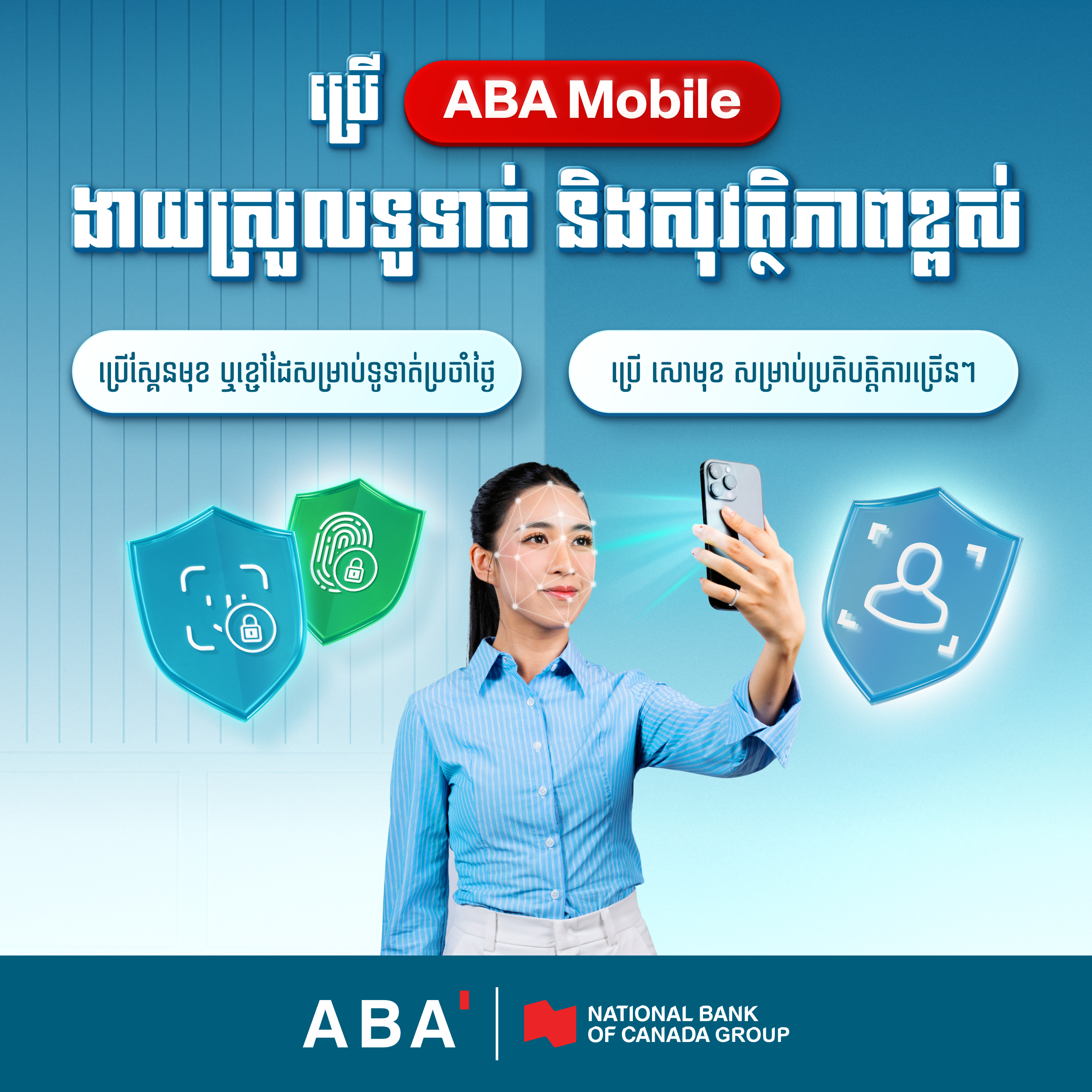 ធនាគារ ABA សូមអំពាវនាវ លើកទឹកចិត្តឱ្យអ្នកអានបង្កើត សោមុខ នៅក្នុងអេប ABA Mobile ឥឡូវនេះ ដើម្បីទទួលបាននូវបទពិសោធន៍ដែលរហ័ស និងសុវត្ថិភាពលើប្រតិបត្តិការធនាគារ៕