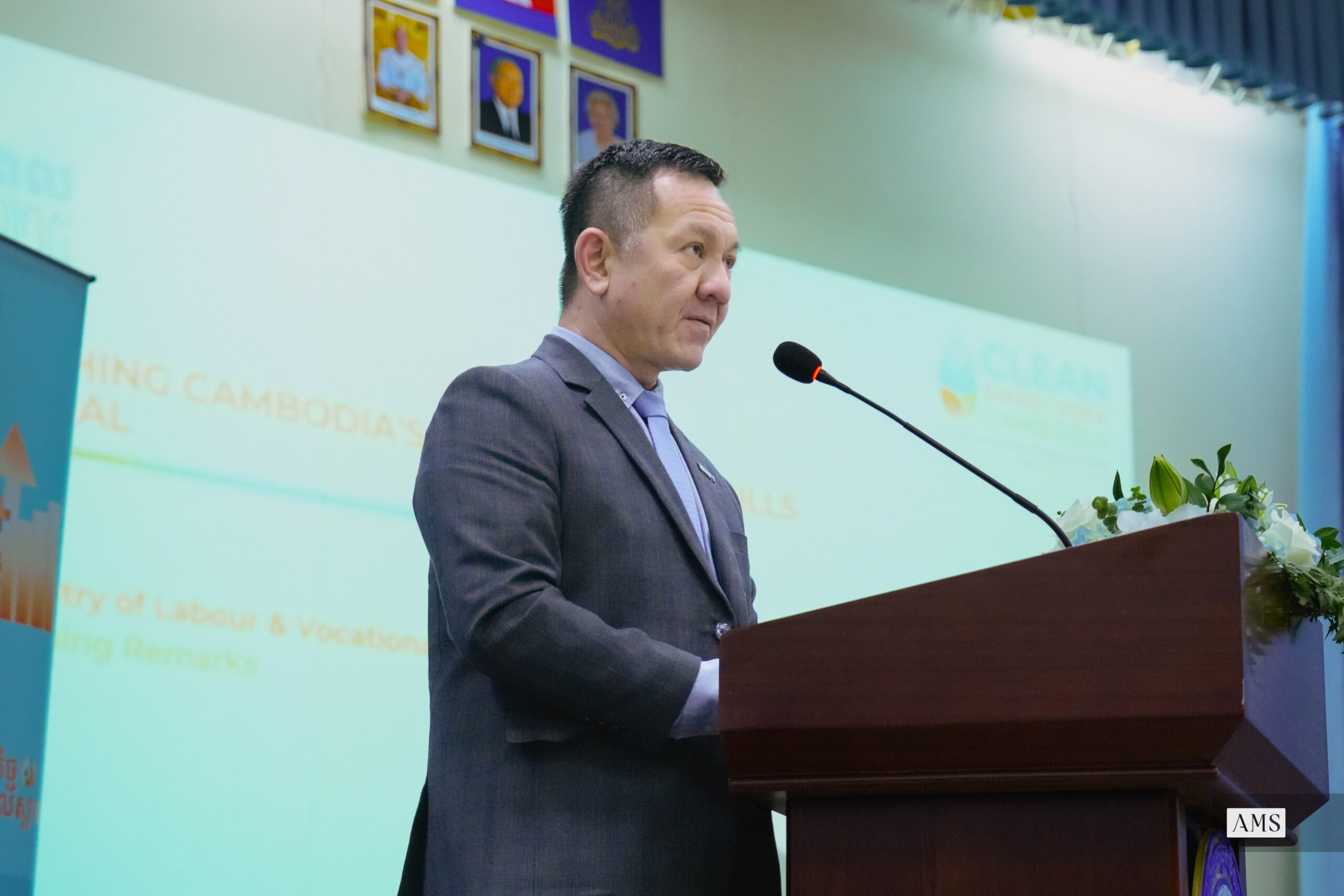 លោកអនុរដ្ឋលេខាធិការ បានបន្តថា៖ ការប្តេជ្ញារបស់កម្ពុជា ឆ្ពោះទៅរកការកាត់បន្ថយកាបូនទាបនាពេលអនាគត បានធ្វើឱ្យមានកំណើនតម្រូវការកម្មករមានគុណវុឌ្ឍិ និងឱកាសការងារ ជាពិសេសយុវជន។