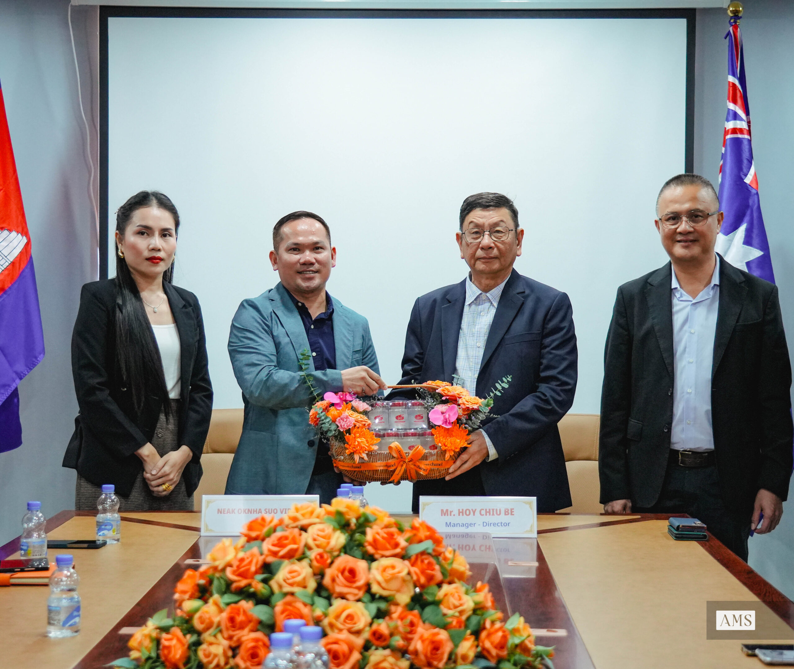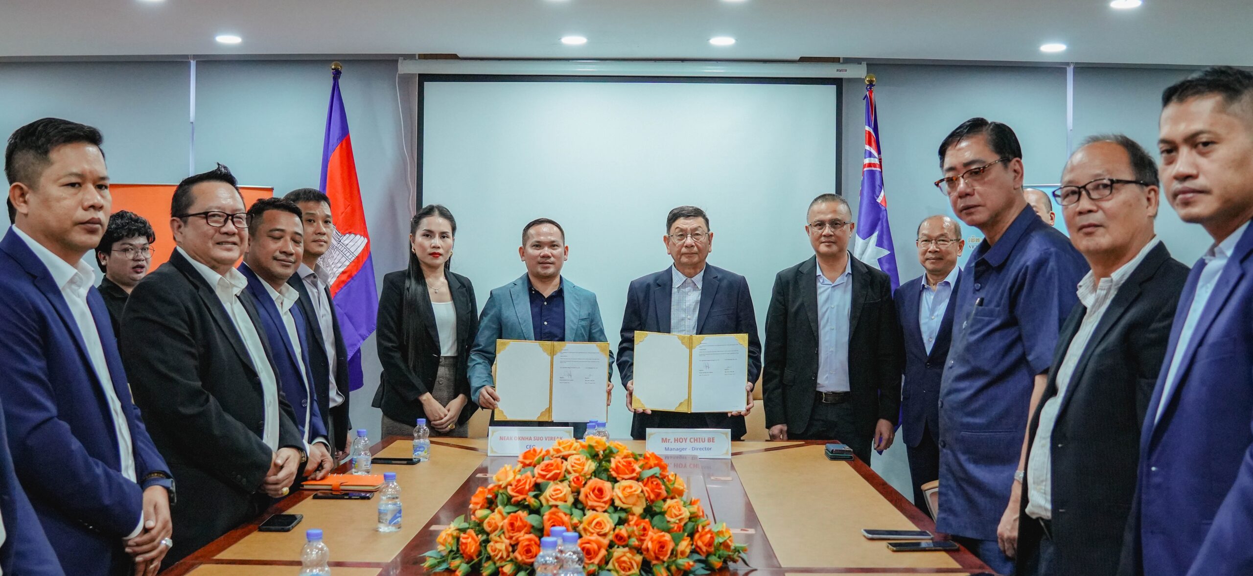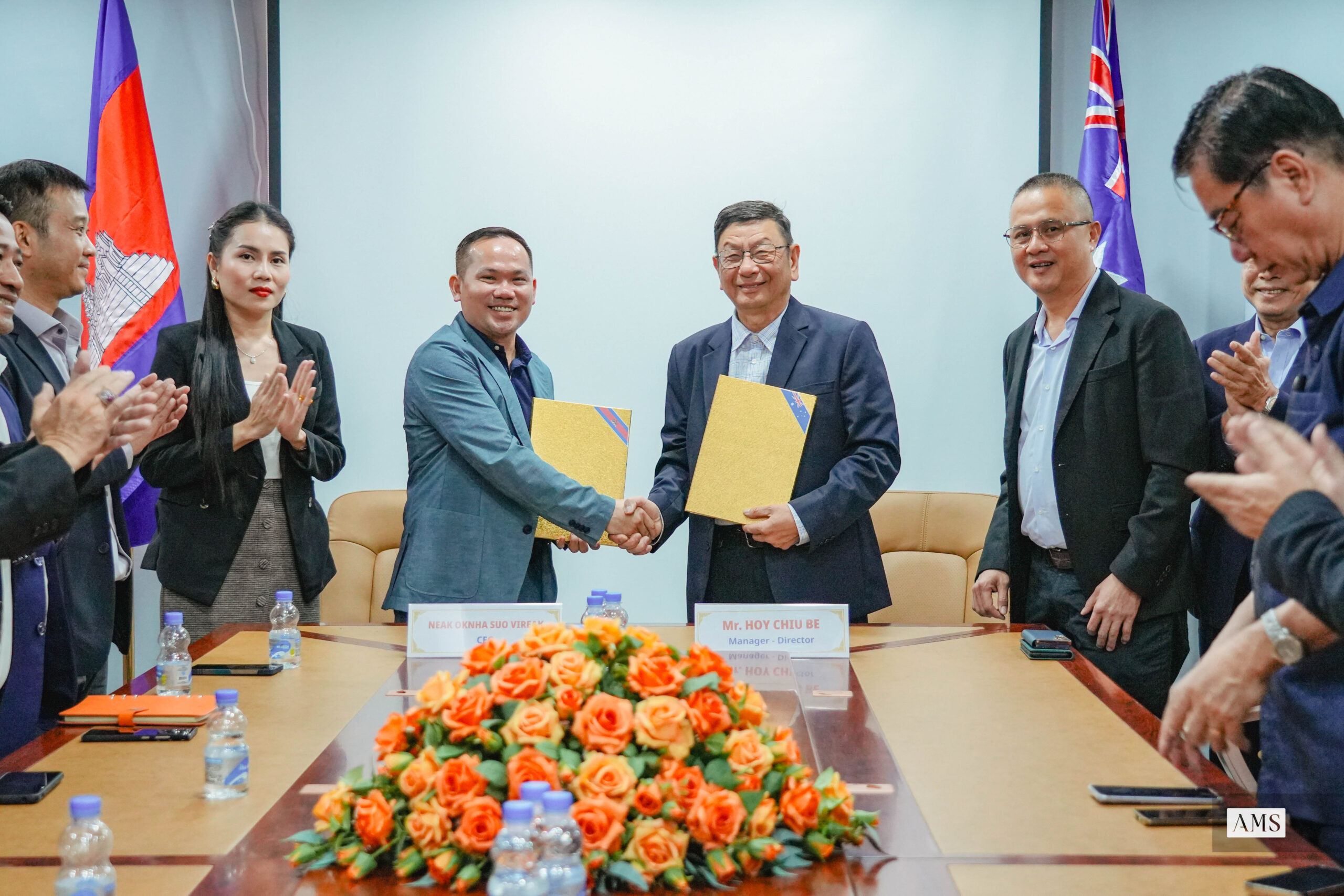 អ្នកឧកញ៉ា សួរ វីរៈ អគ្គនាយកក្រុមហ៊ុន វិរៈ ប៊ុនថាំ អេចប្រេស និងលោក HOY CHIU BE នាយកគ្រប់គ្រងក្រុមហ៊ុន ស៊ីអេជី ហូលសេលឡឺ ភីធីវ៉ាយ អិលធីឌី បានចុះហត្ថលេខាលើកិច្ចព្រមព្រៀងដែលធ្វើឡើងនាព្រឹកថ្ងៃទី២៥ ខែតុលា ឆ្នាំ២០២៥ នៅទីស្នាក់ការកណ្តាលក្រុមហ៊ុន វិរៈ ប៊ុនថាំ គ្រុប រាជធានីភ្នំពេញ។