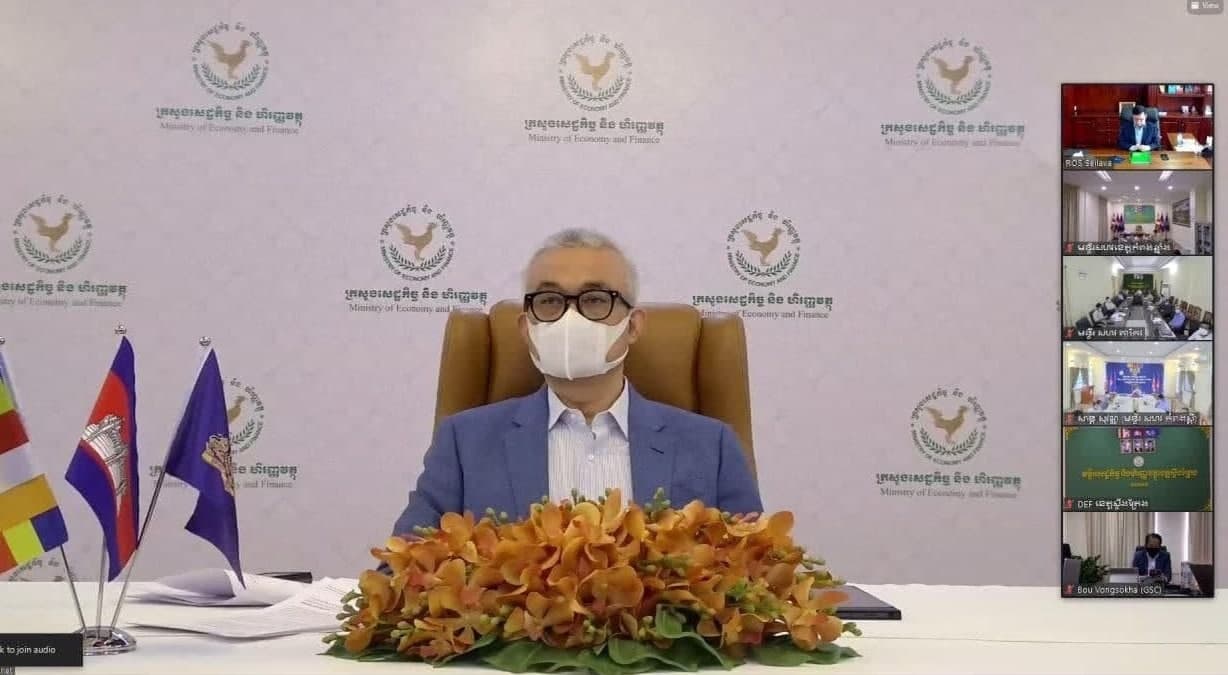 កិច្ចប្រជុំ និងត្រួតពិនិត្យវឌ្ឍនភាពនៃការអនុវត្តកម្មវិធីកែទម្រង់ការគ្រប់គ្រងហិរញ្ញវត្ថុសាធារណៈនេះត្រូវបានរៀបចំឡើងក្រោមអធិបតីភាព អគ្គបណ្ឌិតសភាចារ្យ អូន ព័ន្ធមុនី រ័ត្ន ឧបនាយករដ្ឋមន្រ្តី រដ្ឋមន្រ្តីក្រសួងសេដ្ឋកិច្ច និងហិរញ្ញវត្ថុ និងជាប្រធានគណៈកម្មាធិការដឹកនាំការងារកែទម្រង់ការគ្រប់គ្រងហិរញ្ញវត្ថុសាធារណៈតាមរយៈ Video Conference ។
