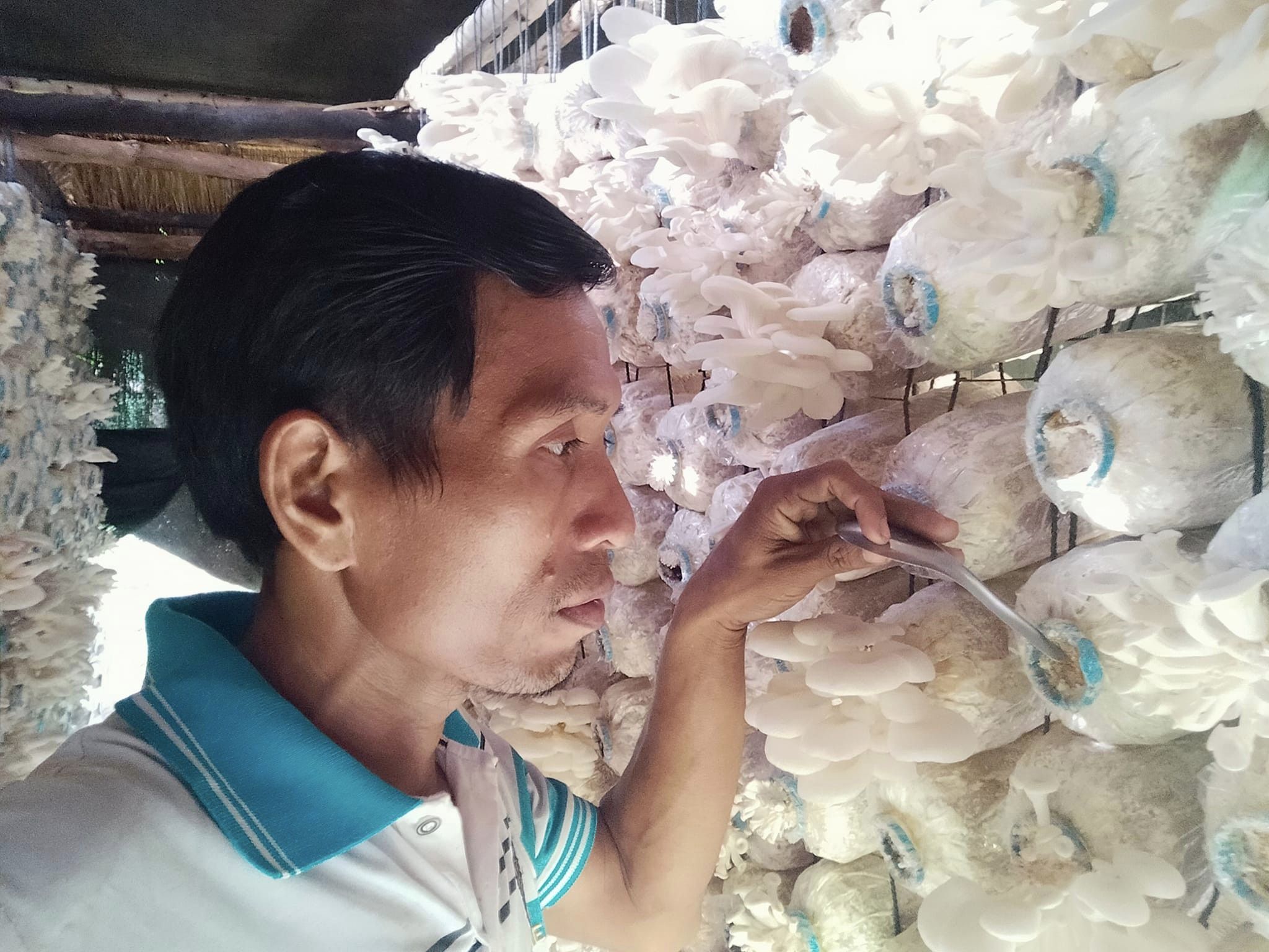 លោកបាន​បន្តថា នៅពេលត្រលប់មក​ដល់ស្រុកវិញ លោកមិនដឹងថា ​ត្រូវធ្វើអ្វីនោះទេ ប៉ុន្តែក្រោយមកលោកមើល​យូធូប​ពីបៀប​បណ្ដុះផ្សិត​ ហើយក៏ចាប់អារម្មណ៍​លើការ​ងារ​បណ្ដុះផ្សិត​នេះ និងបានអនុវត្តន៍តាម​ដោយ​មាន​ដី​ទំនេរ ​៤ ម៉ែត្រ​ គុណនឹង​ ៩ ម៉ែត្រ​ សម្រាប់​បង្កើត​អាជីវកម្មមួយនេះ។