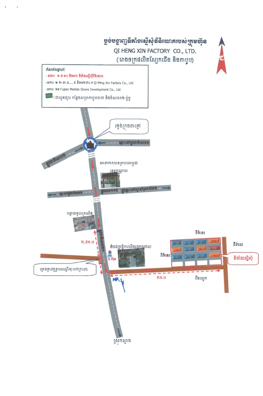 ៥- គម្រោងបង្កើតរោងចក្រផលិតស្បែកជើង និងកាបូប ដែលមានទីតាំងវិនិយោគស្ថិតនៅផ្លូវជាតិលេខ២១ ដីឡូតិ៍លេខ២៧៨៧ តំបន់ A ភូមិទួលក្រសាំង សង្កាត់រកាខ្ពស់ ក្រុងតាខ្មៅ ខេត្តកណ្តាល ក្នុងទុនវិនិយោគប្រមាណ ៨,៨លានដុល្លារអាមេរិក និងអាចបង្កើតការងារបានចំនួន ២ ៩៣០កន្លែង។