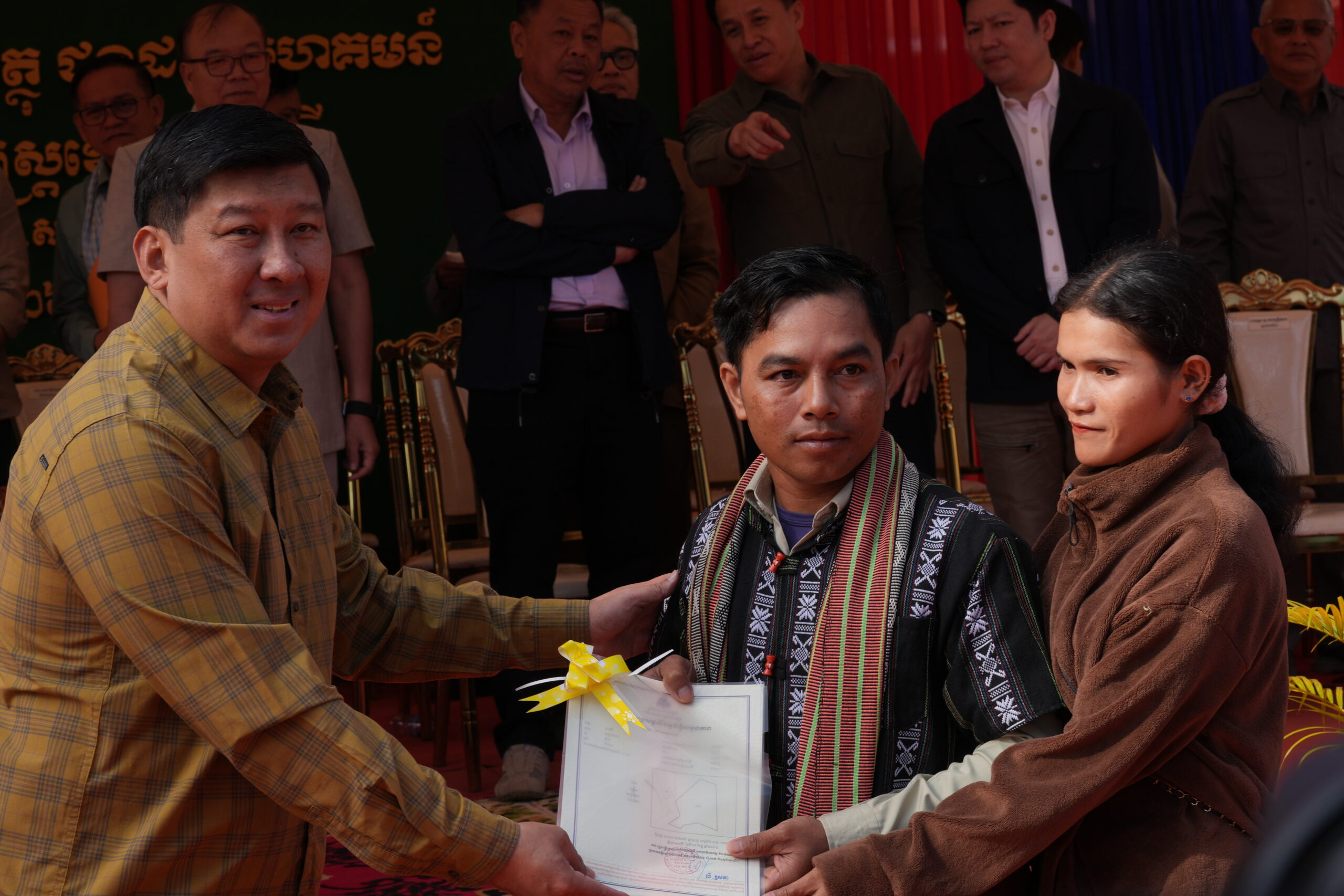 គួររម្លឹកថា កាលពីសប្ដាហ៍មុននេះ ឯកឧត្តមឧបនាយករដ្ឋមន្ត្រី សាយ សំអាល់ រដ្ឋមន្ត្រីក្រសួងរៀបចំដែនដី នគរូបនីយកម្ម និងសំណង់ បានអញ្ជើញចុះចែកបណ្ណកម្មសិទ្ធិសមូហភាពជូនបងប្អូនជនជាតិដើមភាគតិចនៅក្នុងសហគមន៍នៃខេត្តក្រចេះ រតនគិរី និងមណ្ឌលគិរី ។ ពលរដ្ឋជនជាតិដើមភាគតិចដែលទទួលបានបណ្ណនេះ បានបង្ហាញពីអារម្មណ៍សប្បាយរីករាយ បើទោះបីដឹងថា បណ្ណនេះមិនអាចប្រើសម្រាប់លក់ដូរបានក៏ដោយ ពីព្រោះថាជនជាតិដើមភាគតិចមិនមែនយកមកដើម្បីលក់ដូរឬបញ្ចាំឡើយ ។ តាមប្រពៃណីរបស់ពួកគាត់ ដីធ្លីដែលជាកេរដំណែលតពីដូនតា គឺសម្រាប់បង្កបង្កើនផល និងចែកជូនកូនចៅរបស់ខ្លួនប៉ុណ្ណោះ ៕