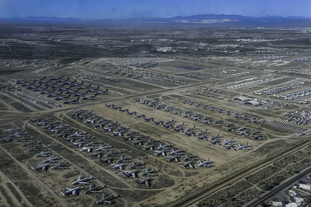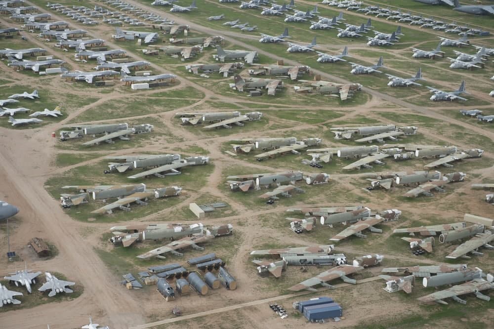 អារីហ្សូណា ៖ ជារៀងរាល់ឆ្នាំ យន្តហោះយោធាចូលនិវត្តរបស់អាមេរិក និងបណ្តាសម្ព័ន្ធមិត្តដែលសព្វាវុធផលិតនៅអាមេរិកត្រូវបានបញ្ជូនមកកាន់ទីតាំងទុកសាកសពយន្តហោះចំណាស់ៗ ឬ boneyard មួយដែលស្ថិតនៅក្នុងរដ្ឋអារីហ្សូណា។
