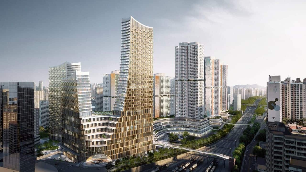 ដោយឡែក ប្រទេសកូរ៉េខាងត្បូងត្រូវបានគេជឿជាក់ថានឹងក្លាយទៅជាតំបន់ទី២ដែលមានគម្រោងសាងសង់ទីក្រុងប្រភេទនេះ ប៉ុន្តែមិនមែនរយៈពេល១៥នាទីនោះទេ គឺត្រឹមតែ១០នាទីប៉ុណ្ណោះ 10-minute city ដោយសារវាស្ថិតនៅក្នុងទំហំផ្ទៃដីតូចប្រមាណតែជា ៥០ហិកតាហើយមានអគារស្នាក់នៅខ្ពស់ៗចំនួន៨កន្លែងប្រមូលផ្តុំគ្នា។