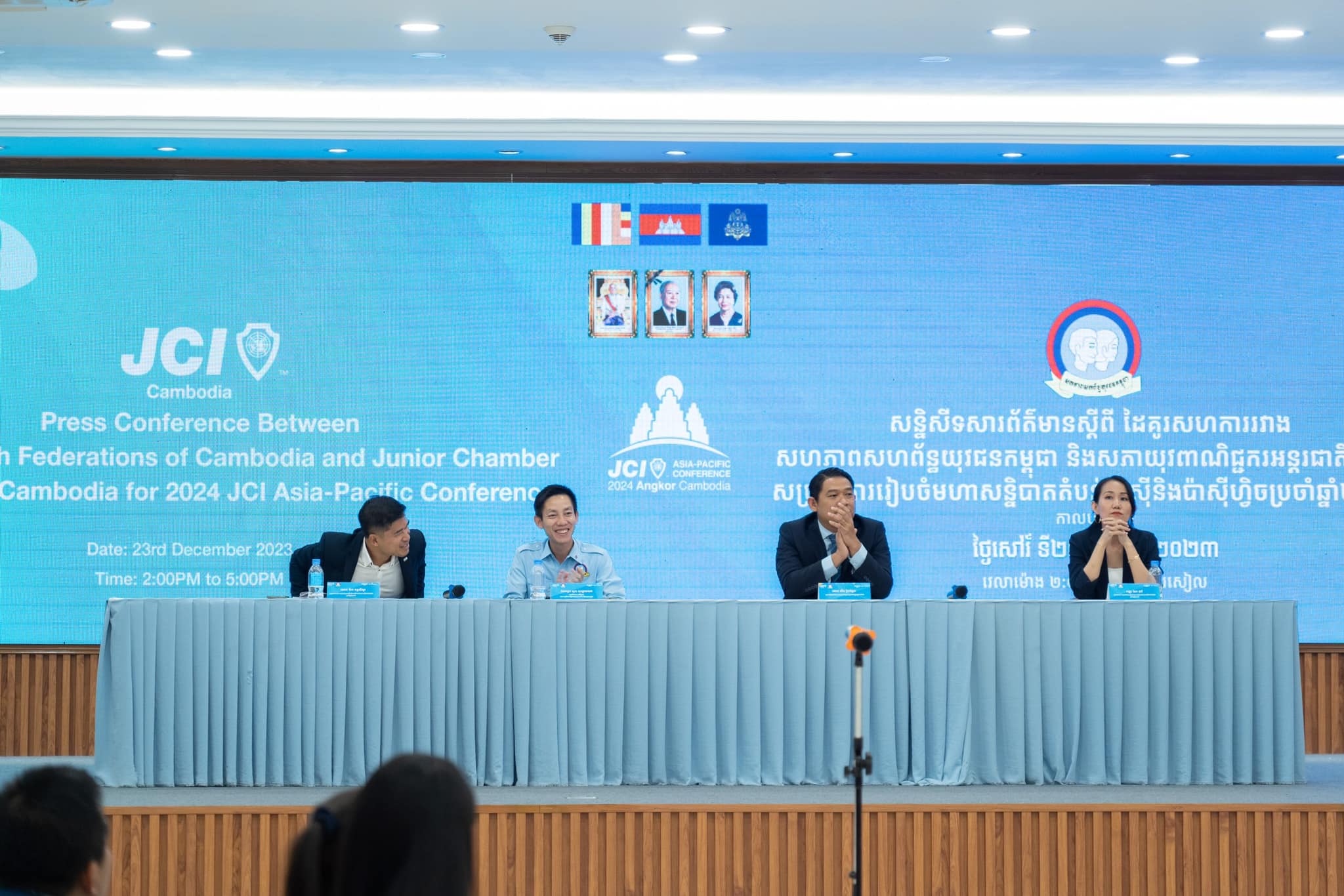 ភ្នំពេញ ៖ សភាយុវពាណិជ្ជករអន្តរជាតិកម្ពុជា ជេស៊ីអាយ (JCI CAMBODIA) និងសហភាពសហព័ន្ធយុវជនកម្ពុជា នឹងធ្វើជាម្ចាស់ផ្ទះរៀបចំសន្និបាតអាស៊ីប៉ាស៊ីហ្វិក​ប្រចាំឆ្នាំ​២០២៤ ​(2024 JCI ASIA-PACIFIC CONFERENCE) នៅលើទឹកដីអង្គរ ខេត្តសៀមរាប ចាប់ពីថ្ងៃទី ០៦ ដល់ ថ្ងៃទី០៩ ខែមិថុនា ឆ្នាំ២០២៤។