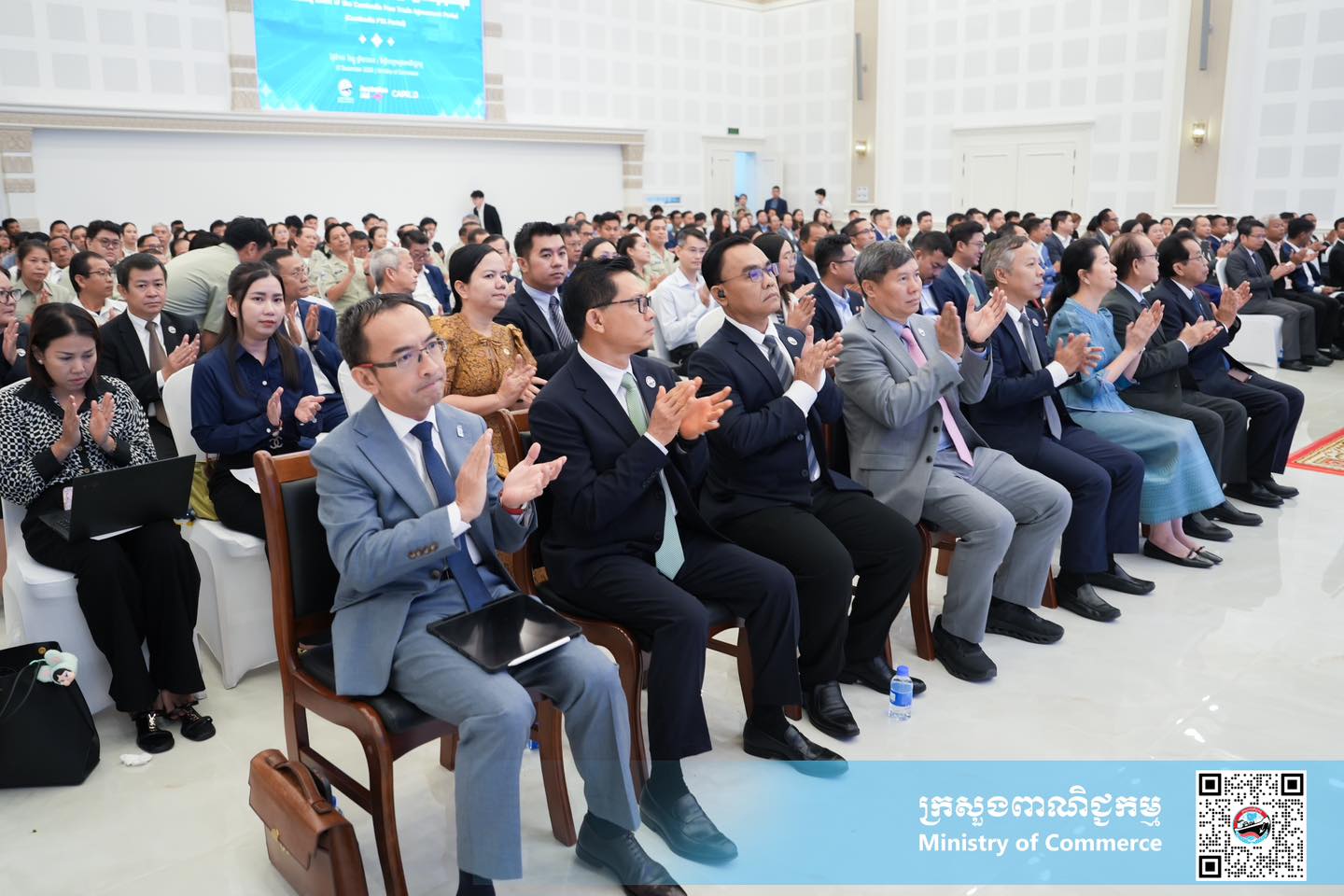លោកជំទាវ ចម និម្មល រដ្ឋមន្ត្រីក្រសួងពាណិជ្ជកម្ម និង ឯកឧត្តម ដេរិក យីប ឯកអគ្គរដ្ឋទូតអូស្ត្រាលីប្រចាំនៅកម្ពុជា បានអញ្ជើញជាគណៈអធិបតីក្នុងពិធីសម្ពោធដាក់ឱ្យប្រើប្រាស់ជាផ្លូវការនូវថ្នាលព័ត៌មានកិច្ចព្រមព្រៀងពាណិជ្ជកម្មសេរីកម្ពុជា នាព្រឹកថ្ងៃសុក្រ ទី១២ ខែធ្នូ ឆ្នាំ២០២៥ នៅទីស្ដីការក្រសួងពាណិជ្ជកម្ម។ ពិធីនេះក៏មានវត្តមានអញ្ជើញចូលរួមដោយតំណាងក្រសួង-ស្ថាប័ន្ធពាក់ព័ន្ធ តំណាងស្ថានទូតអូស្ត្រាលីប្រចាំកម្ពុជា តំណាង CAPRED និងតំណាងវិស័យជននានាជាច្រើនរូប។