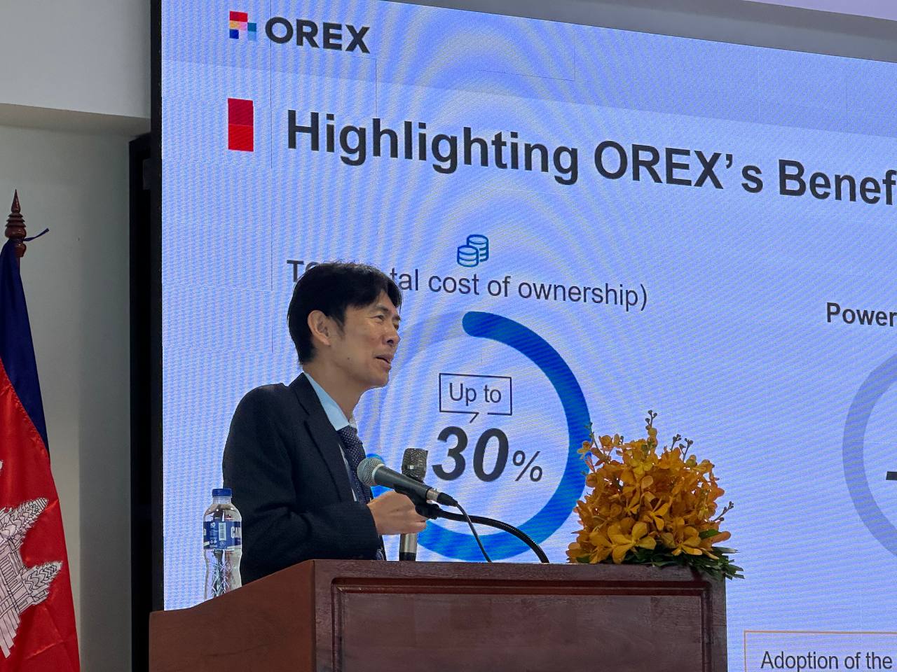 លោកបណ្ឌិត ABETA Sadayuki នាយកផ្នែកបច្ចេកវិទ្យានៃសាជីវកម្ម OREX SAI បានធ្វើបទបង្ហាញស្តីពីសក្តានុពលនៃបច្ចេកវិទ្យា Open RAN ។
