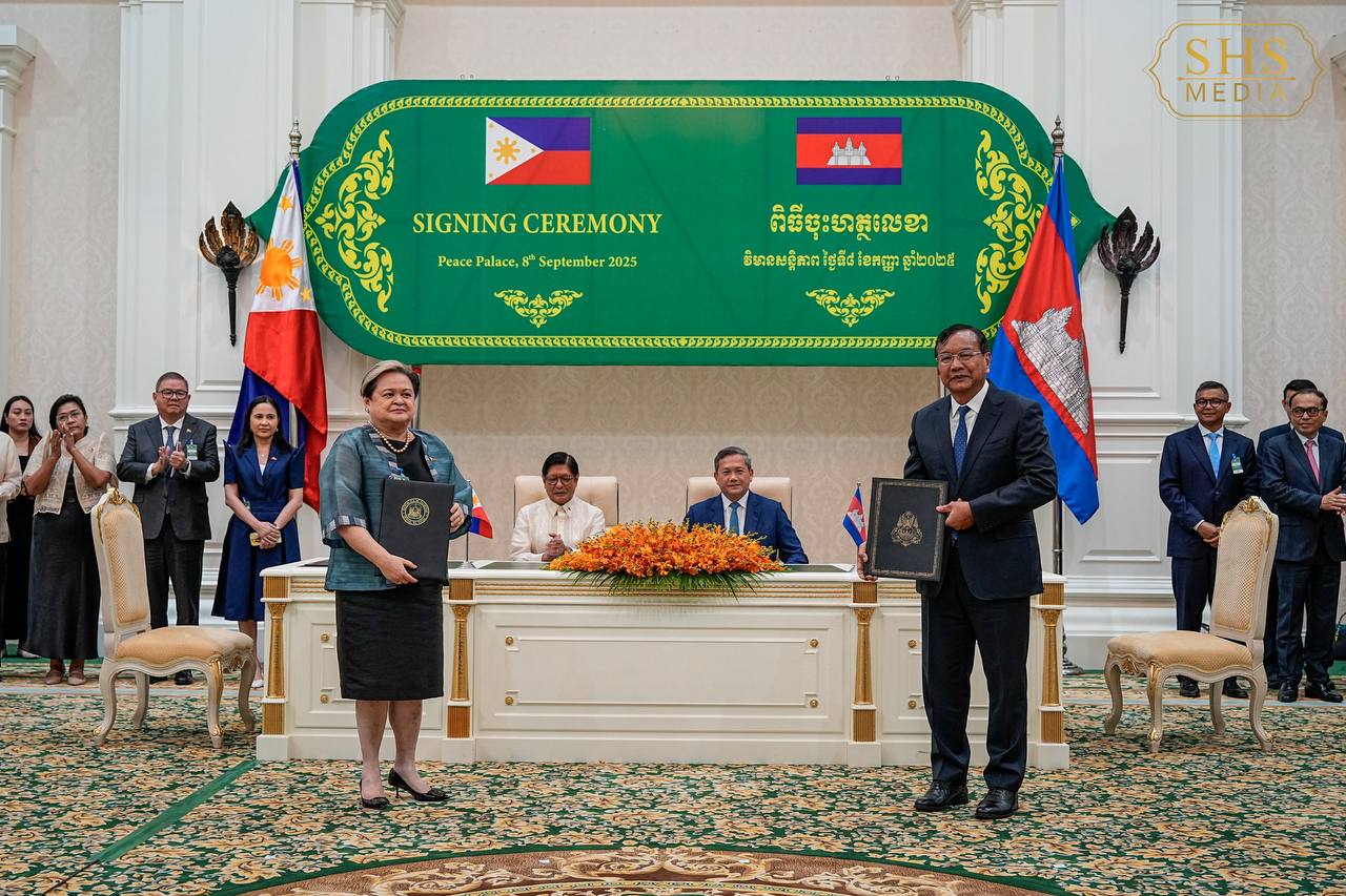 ភ្នំពេញ៖ រាជរដ្ឋាភិបាលកម្ពុជា និងរដ្ឋាភិបាលហ្វីលីពីន បានចុះកិច្ចព្រមព្រៀងលើវិស័យសំខាន់ៗចំនួន៣ រួមមាន វិស័យអប់រំ វិស័យអាកាសចរណ៍ និងកិច្ចសហប្រតិបត្តិការក្នុងការប្រយុទ្ធប្រឆាំងឧក្រិដ្ឋកម្មឆ្លងដែន។ ពិធីនេះត្រូវបានធ្វើឡើងក្នុងឱកាសដំណើរទស្សនកិច្ចផ្លូវរដ្ឋរបស់ លោក ម៉ាកូស (Ferdinand Romualdez Marcos Jr.) ប្រធានាធិបតីនៃសាធារណរដ្ឋ ហ្វីលីពីន មកកាន់កម្ពុជា ដែលមានរយៈពេល៣ថ្ងៃ (ថ្ងៃទី០៧-០៩ ខែកញ្ញា)។