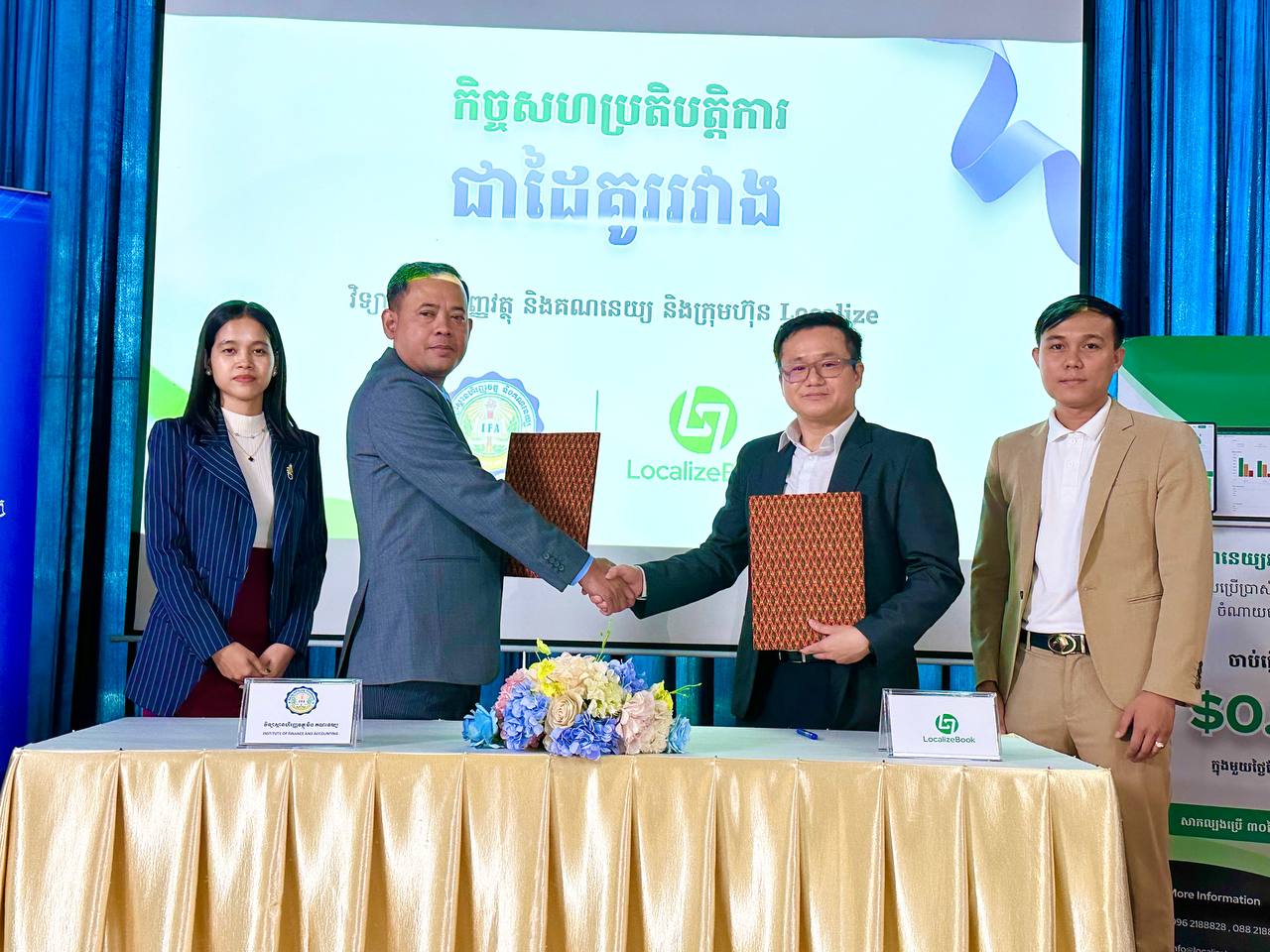លោក ប៊ុន សុន្ទរង្គ នាយកវិទ្យាស្ថានហិរញ្ញវត្ថុនិងគណនេយ្យ (IFA) បានមានប្រសាសន៍ឱ្យដឹងថា៖ LOCALIZE និង IFA នឹងសហការគ្នាដើម្បីសិក្សាលទ្ធភាពប្រើប្រាស់បច្ចេកវិទ្យាគណនេយ្យ Digital Accounting ឬ Online Accounting ដើម្បីអាចឱ្យនិស្សិតនៅ IFA ស្វែងយល់បន្ថែម។
