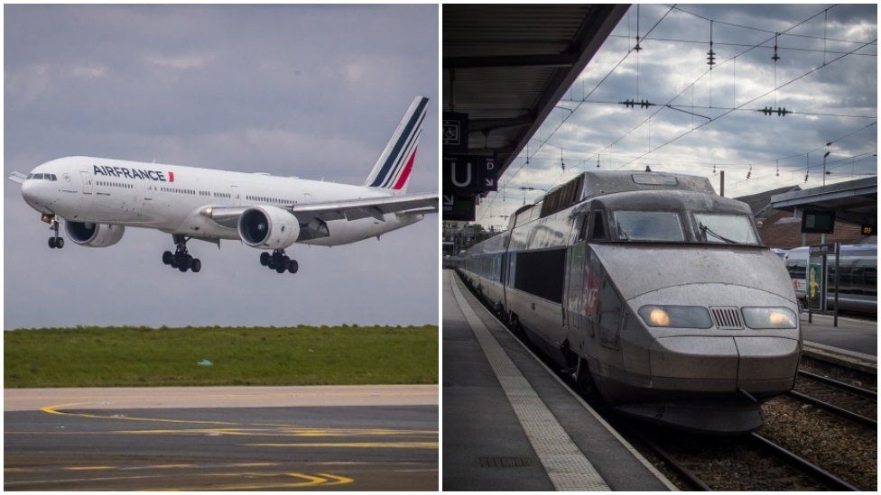 ជើងហោះហើរចម្ងាយជិតៗត្រូវបានបារាំងកំណត់ថា ជាជើងហោះហើរទាំងឡាយណាដែលគេអាចប្រើប្រាស់ការធ្វើដំណើរតាមរយៈរថភ្លើង ឬរថយន្តក្រុងជំនួសបាន ហើយវាចំណាយពេលតិចជាង ២,៥ម៉ោង ដែលតាមផែនការគោលការណ៍ច្បាប់នេះនឹងត្រូវចាប់ផ្តើមអនុវត្តនៅក្នុងឆ្នាំ២០២៣នេះតែម្ដង។