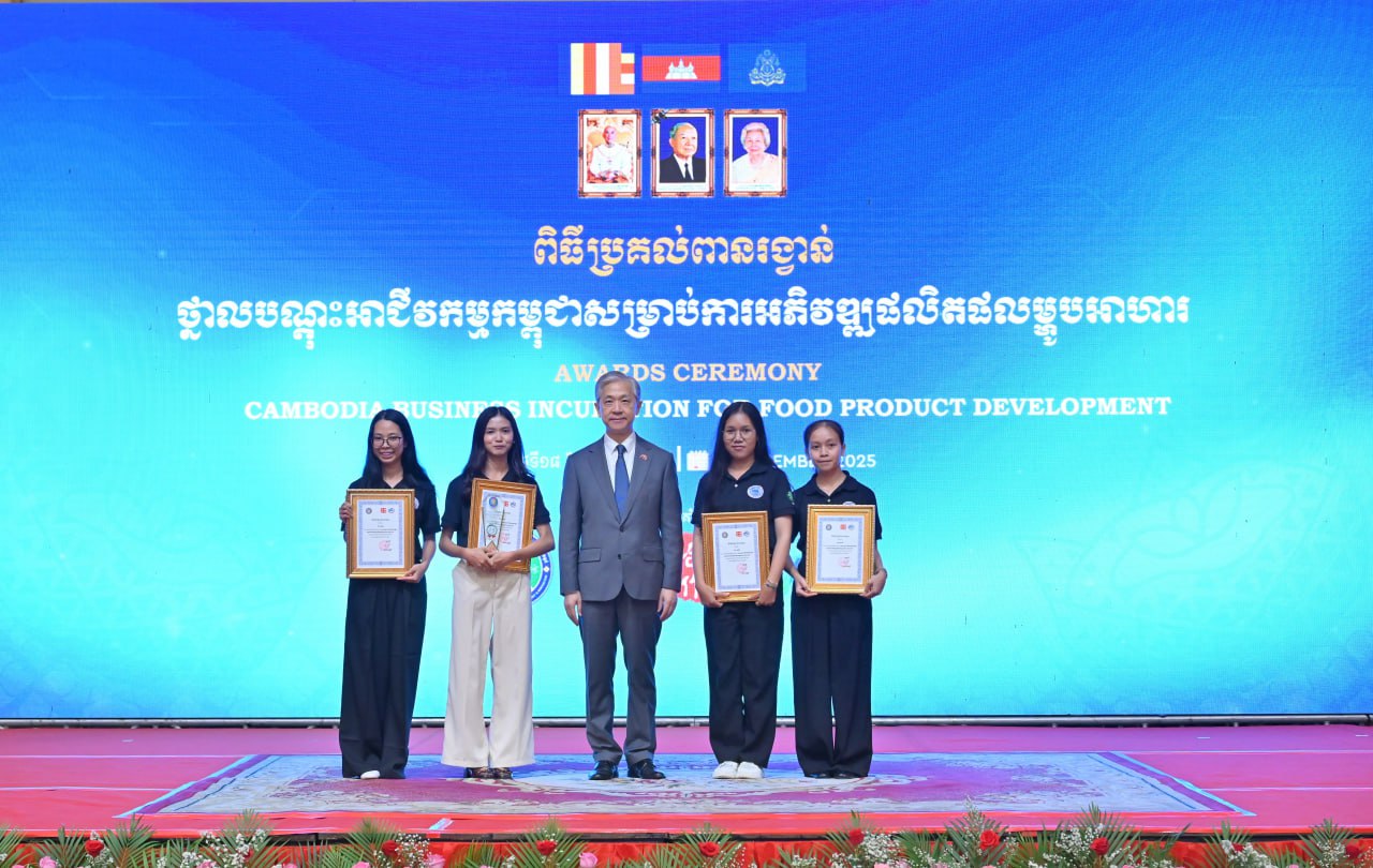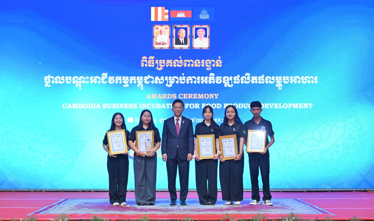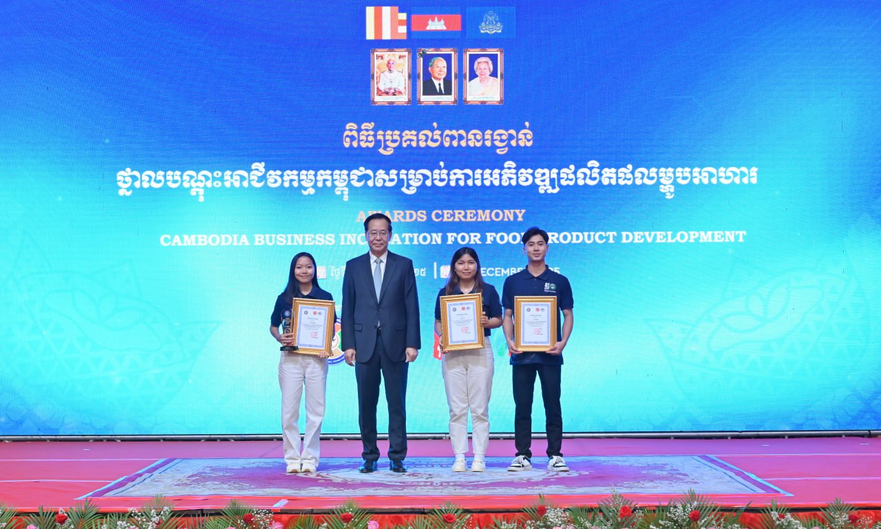 ភ្នំពេញ៖ គម្រោងលើកកម្ពស់សមត្ថភាពផលិតកម្ម តាមរយៈការពង្រឹងសមត្ថភាពសហគ្រាសធុនតូច និងមធ្យម និងកិច្ចសហប្រតិបត្តិការបច្ចេកទេសក្រោមបរិបទឧស្សាហកម្មជំនាន់ទី៤ នៅប្រទេសកម្ពុជា ឡាវ និងមីយ៉ាន់ម៉ា ត្រូវបានបិទបញ្ចប់ដោយជោគជ័យ ជាមួយនឹងពិធីប្រគល់ពានរង្វាន់នវានុវត្តន៍សម្រាប់ការអភិវឌ្ឍផលិត​ផល​ម្ហូបអាហាររបស់ក្រុមនិស្សិត។ គម្រោងនេះត្រូវបានអនុវត្តរយៈពេល១៨ខែ នៅក្នុងប្រទេសកម្ពុជា ឡាវ និងមីយ៉ាន់ម៉ា ក្រោមក្របខ័ណ្ឌកិច្ចសហប្រតិបត្តិការមេគង្គ-ឡានឆាង។