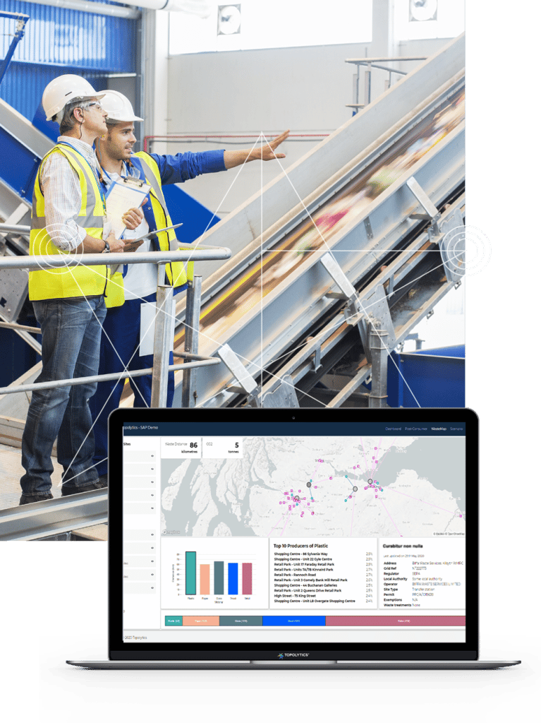 Topolytics ដោយប្រើប្រាស់បច្ចេកវិទ្យា AI បានអភិវឌ្ឍបានជាកម្មវិធីដ៏ឆ្លាតវ៉ៃមួយដែលមានឈ្មោះថា WasteMap អាចជួយឲ្យបណ្តា ក្រុមហ៊ុនអាជីវកម្មទាំងអស់ធ្វើការគ្រប់គ្រងនូវកាកសំណល់របស់ពួកគេបានងាយស្រួល និងល្អប្រសើរខ្លាំងជាងមុន។ បច្ចេកវិទ្យារបស់ Topolytics នេះ អាចធ្វើការត្រួតពិនិត្យទៅលើដំណើរការនៃការប្រមូល និងការកែច្នៃកាកសំណល់ដោយពេលវេលាច្បាស់លាស់ផងដែរ។