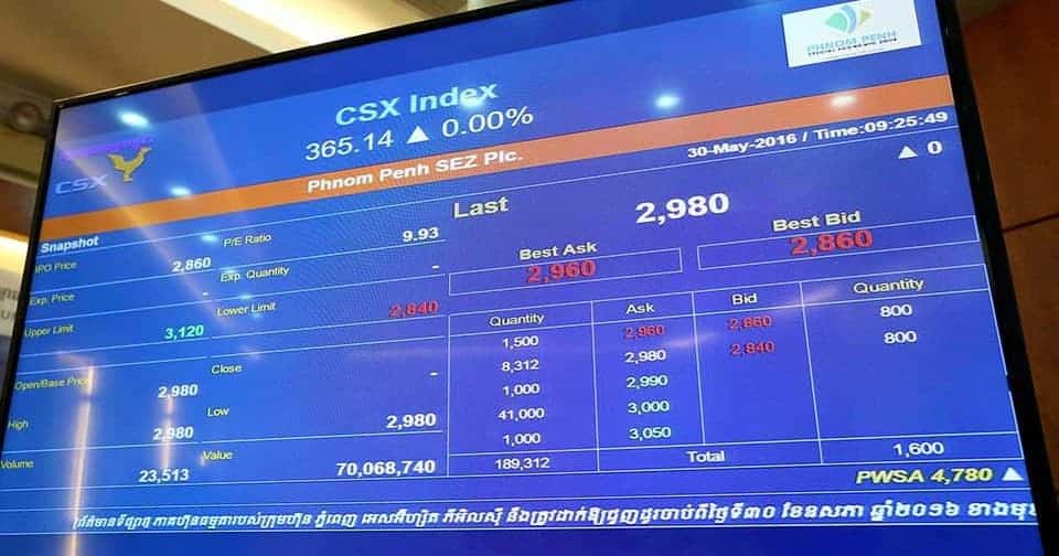 ភ្នំពេញ ៖ ជាទូទៅ ថ្លៃភាគហ៊ុនអាចប្រែប្រួលជារៀងរាល់ថ្ងៃ ដែលអាចនិយាយបានយ៉ាងសាមញ្ញថា ដោយសារកម្លាំងនៃផ្គត់ផ្គង់ និងតម្រូវការនៅលើទីផ្សារ។ បានសេចក្តីថា ប្រសិនបើមានការផ្គត់ផ្គង់ (ការលក់) ច្រើនជាងតម្រូវការ (ការទិញ) នោះថ្លៃមានទំនោរធ្លាក់ចុះ ហើយផ្ទុយមកវិញ ប្រសិនបើមានអ្នកត្រូវការ (អ្នកទិញ) ច្រើនជាងអ្នកផ្គត់ផ្គង់ (អ្នកលក់) នោះថ្លៃនឹងមានទំនោរកើនឡើងវិញ។