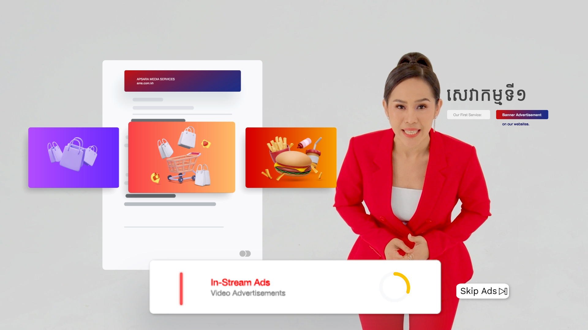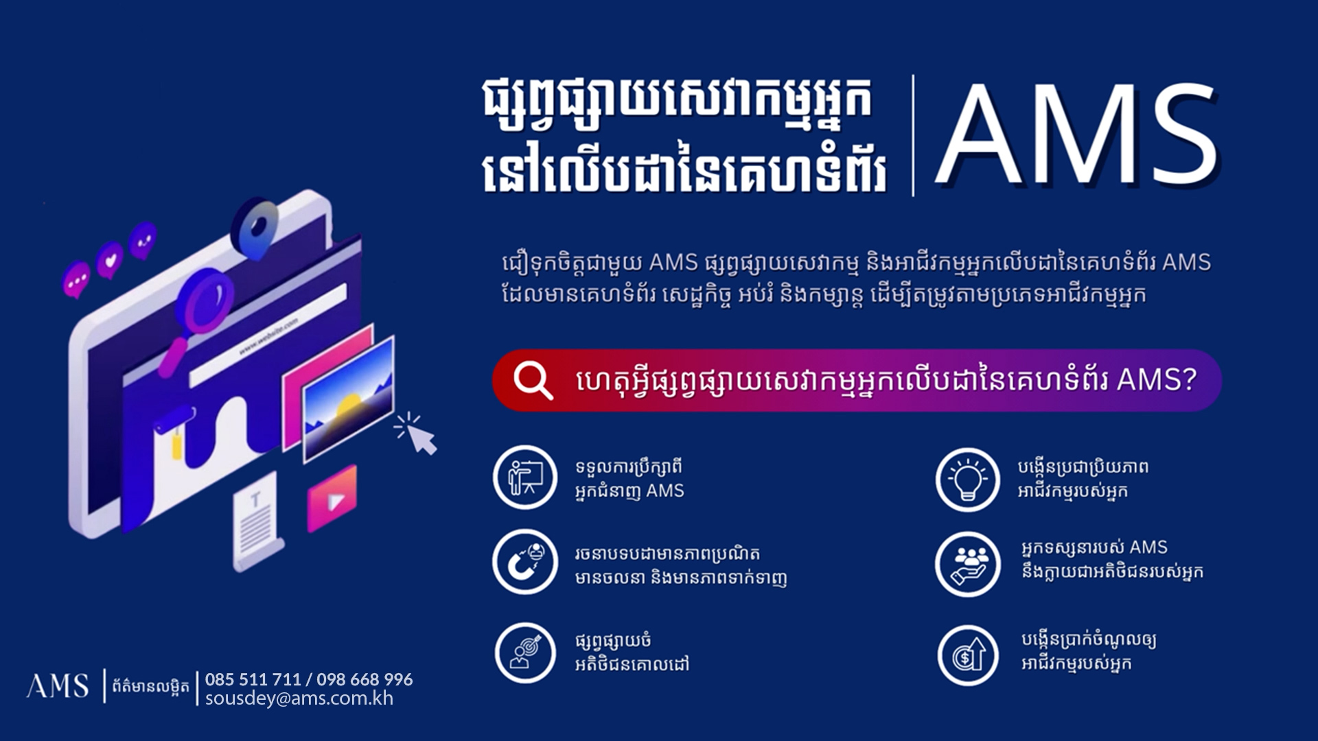 ក្នុងប្រទេសកម្ពុជា ក្រុមហ៊ុននីមួយៗកំពុងតែខិតខំផ្សព្វផ្សាយពីអាជីវកម្មរបស់ខ្លួននៅលើប្រព័ន្ធឌីជីថល ស្របពេលជាមួយគ្នានេះដែរ Apsara Media Services ឬ AMS ដែលជាក្រុមហ៊ុនបណ្តាញសារព័ត៌មានមួយដ៏លេចធ្លោបានដើរតួនាទីយ៉ាងសំខាន់ដើម្បីផ្តល់ការប្រឹក្សាយោបល់លើការផ្សព្វផ្សាយដល់អតិថិជនទៅតាមជំនាញបច្ចេកទេសដែលខ្លួនមាន។ AMS បាននិងកំពុងផលិតវីដេអូកម្មវិធី ភាពយន្តភាគ រឿងខ្លីៗល្អៗពាក់ព័ន្ធនឹងការអប់រំ សេដ្ឋកិច្ច និងកម្សាន្ត ដែលសមិទ្ធផលទាំងអស់នេះបានឆក់យកបេះដូងរបស់អ្នកទស្សនាជាច្រើន ទើបធ្វើឱ្យ AMS ទទួលបានការទុកចិត្តទៅលើគុណភាពនៃមាតិកាដែលខ្លួនបានផលិត ជាពិសេសចំណាប់អារម្មណ៍ទៅលើការផ្សព្វផ្សាយលើវីដេអូទាំងអស់នោះ។